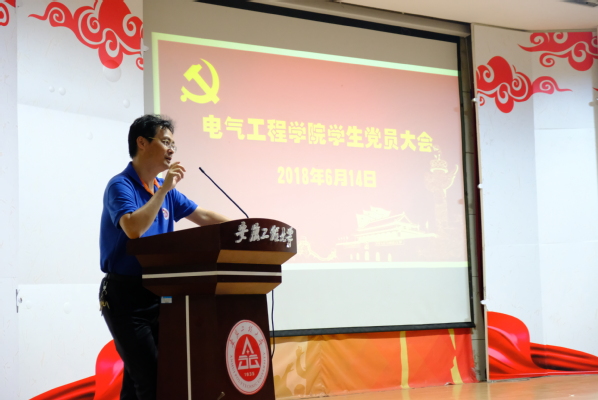 郭全根为全体学生党员上了一堂精彩生动的党课。他首先代表所有老师和同学向毕业生党员在四年中所取得的成绩表示衷心的祝贺,希望大家在毕业后要不忘初心,砥砺前行,在人生最美好的青春年华里奋力前进。随后,他带领大家重温了党史,并结合“从严治党”和习近平总书记在北大师生座谈会上讲话的要求,强调了党员的义务和责任,要求毕业生党员即使在离校之后,仍然要继续加强政治理论的学习,不断提高党性修养,进一步坚定理想信念,牢记自己的党员身份,并在实际的工作和生活中积极践行,做到内化于心,外化于行。最后,他表达了对毕业生党员的祝福,希望毕业生党员要发挥党员榜样作用,站好最后一班岗。在步入社会后,既要爱岗敬业、建功立业,又要热爱生活、懂得感恩。在新的工作和生活之余,记得常回母校看看,母校永远是大家的避风港!