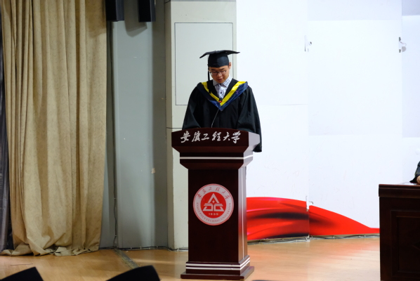 毕业生代表自动化144班钱磊上台发言,他分享了自己在大学四年里的收获和感悟,表达了他对四年美好校园生活的留恋,对学院及老师的衷心感谢,对母校的真诚祝愿。