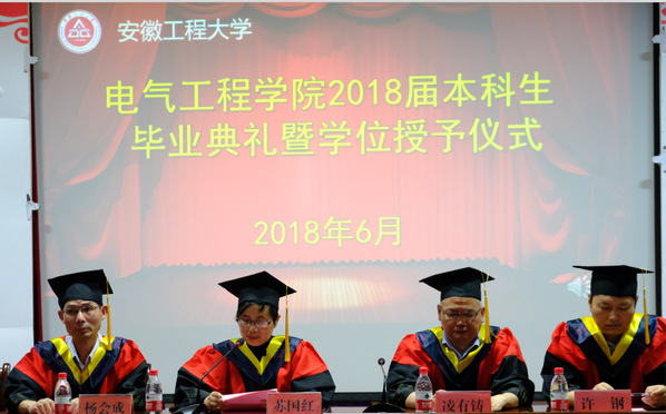 毕业典礼在庄严的国歌声中正式开始。学院院长凌有铸宣读了授予2018届毕业生学士学位的决定,学院党委书记杨会成宣读了2018年安徽省品学兼优毕业生和2018年学校优秀毕业生的表彰决定及名单,主席台的领导、老师为受表彰的毕业生颁发了荣誉证书。
