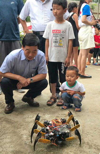 与此同时,同学们还利用自己制作的蓝牙小车、旋转LED、炫光心形灯等科技作品为当地留守儿童开展了科普宣传活动