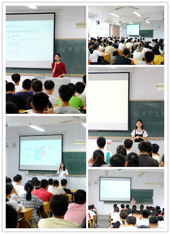 报告会上,优秀学生代表们分别从学业规划、学科竞赛、实践锻炼、能力培养等方面向同学们分享了自己的经验与感悟。电子163张宁宁结合了自身经历分析了大学生活中,可能会遇到的种种困难,并给予答疑解惑,现场气氛极为活跃,引起大一新生的一致赞叹;建电161范家发建议新生,新学期是新的起点,适当的参加社团活动可以锻炼个人的能力。大学的意义在于既要贴切实际又要有理想;通信161刘闯闯从学习专业的角度,希望大一新生们能好好学习,打下坚实的基础对今后发展及考研和就业都有很大的助益。他还强调要通过课外活动,人际交往来改善自己的性格特点,并希望大家能够充实地度过这段美好的大学时光;电气中外162周星源分别从如何规划大学生活、大学是重要的分水岭、努力的方向和人际相处四个方面来详细为新生们介绍了解大学生活。