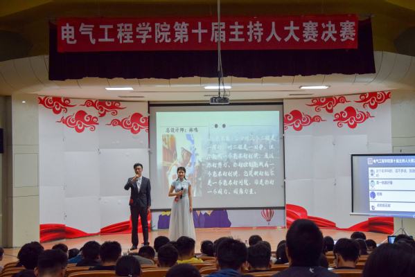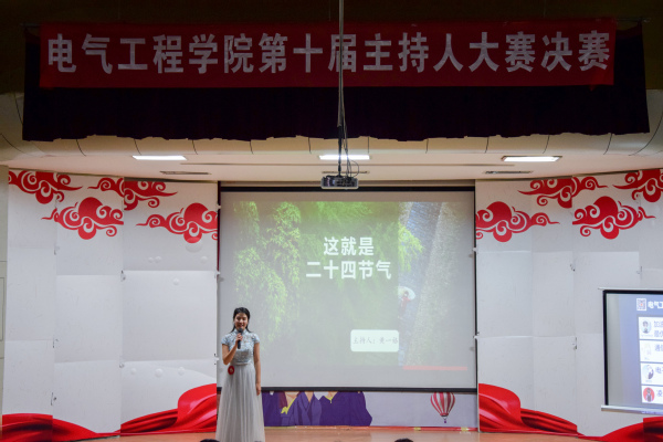 经过初赛、复赛的激烈角逐,共有12名选手脱颖而出,成功进入决赛。决赛共分为“挑战赛”、“我的舞台”、“文化之旅”三个环节。在慷慨激昂的选手开场秀《追梦赤子心》的歌声中,比赛正式拉开帷幕。第一环节是模拟主持,六号选手欣龙与七号选手刘畅以电台播音的形式开始他们精彩的表演,九号选手吴梅子和十二号选手倪佳模拟新闻联播进行了精彩的主持,二号选手祁晶晶和三号选手何天赐模拟电影工厂进行精选电影的推荐介绍主持,八号选手黄一格和十一号选手许克捷以“厉害了,我的国”为主题,开展发布会形式的主持,声情并茂,绘声绘色的精彩表现给评委老师留下了深刻的印象。各位选手们的表现各具特色,风格迥异,可圈可点。紧接着,选手们以小组的形式开展“我的舞台”第二环节的节目表演。小品《上学那些事儿》、歌曲串烧、舞台剧《灰姑娘》,蕴含新意、生动形象,迎来观众们的热烈掌声,阵阵好评。最终有六位选手成功晋级,踏上第三环节—文化之旅的征程,在舞台上尽展风采。来自通信182的黄一格同学主持的内容以“这就是二十四节气”为主题,精彩的表现赢得评委老师们的称赞。来自电气中外182何天赐同学则向观众们介绍徽州文化代表—胡适先生,最终以全场最高分拔得头筹,赢得桂冠。
