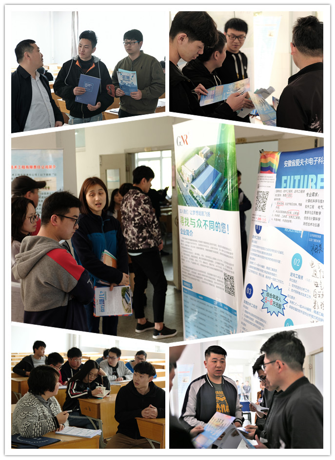 芜湖中电兆威电子股份有限公司、安徽省爱夫卡电子科技有限公司、芜湖杰诺瑞汽车电器系统有限公司、芜湖宏景电子股份有限公司、安徽扬子职业技术学院、安徽海螺信息技术工程有限公司等企业应邀参会,招聘专业涵盖电气工程及其自动化、自动化、电子信息工程、电子信息科学与技术、通信工程等多个专业。