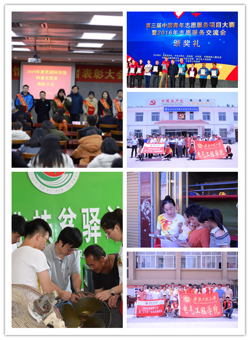 每年学院都会组建团队,并配备教师党员,结合专业特色,指导学生开展丰富多彩、富有实效的社会实践和志愿服务活动。其中,“家电义务维修进万家”志愿服务项目,凭借三十多年的志愿服务传承,获得第三届中国青年志愿服务项目大赛金奖;“向阳红——女童成长守护公益项目”获得安徽省第四届青年志愿服务项目大赛公益创业赛二等奖;“向阳花开——大别山贫困地区女童保护公益项目”获得第五届中国“互联网+”创新创业大赛安徽赛区银奖。学院团委学生会青年志愿者队七年来与芜湖市科技馆合作,开设“电学小课堂”,提供优质的志愿服务,荣获芜湖科技馆2018年度、2019年度“优秀科普志愿服务团队”荣誉称号。在这些团队当中,学生党员树立了榜样,传递正能量,切实发挥了“传、帮、带”的作用,将志愿服务精神和志愿服务项目一直传承下去。