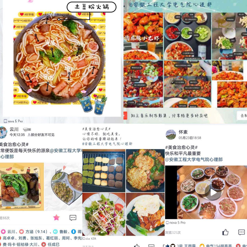 心情故事分享活动倡导学生用便签、照片、说说、朋友圈、视频等方式传递出疫情期间在家中心路历程,记录心灵成长故事,展现自己宅家抗疫期间的快乐生活。增强大学生的沟通、表达以及动手能力的同时为宅家抗疫生活增添一份乐趣。为家人制作美食分享活动鼓励学生通过为家人制作美食表达对父母的感恩之心,对生活的热爱之情。活动通过院学生会心理部官方QQ、微信自媒体平台等方式进行宣传,700余人线上报名参加活动。同学们提交的作品展现出即使在疫情笼罩期间也能保持健康乐观的心态。学院心理部组成评委会对收到的作品进行评选,遴选出优秀作品给予表彰。
