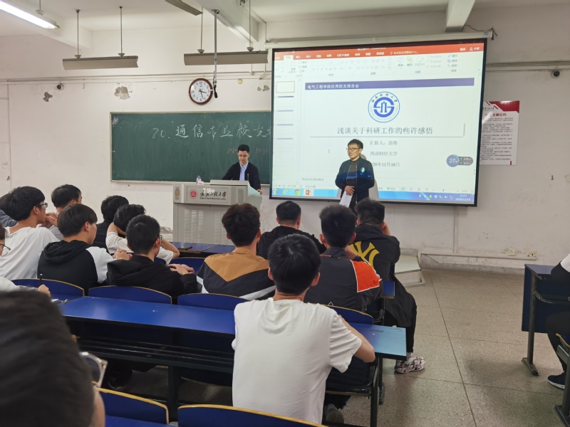 11月18日,小说狂人 优秀校友报告会在6教213举行。通信工程专业优秀毕业生、西南财经大学经济学博士范维校友应邀为2020级通信新生做专题报告,168位新生及辅导员参加了报告会。报告会由通信专业系主任、副教授李炜老师主持。