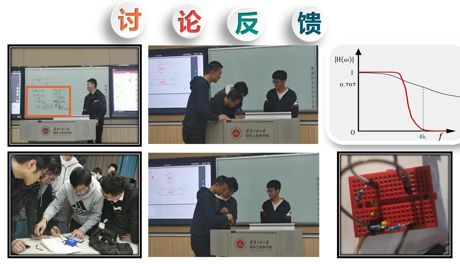 本次观摩课主要内容是《滤波器的设计》,课程以具体项目引入,明确目标,从最基本的选型到设计,层层递进,根据同学们在讨论课上所设计的硬件实物滤波效果引发思考:“如何才能找到真正需要的参数,设计出合理的滤波器?”。课前学生学习充分,教学组织与实施突出学生中心地位,教学理念先进,突出“立德树人”。内容有深度、广度又不失活力与温度,学生参与度非常高,以弹幕、做题、投稿、回答多种方式积极回应。