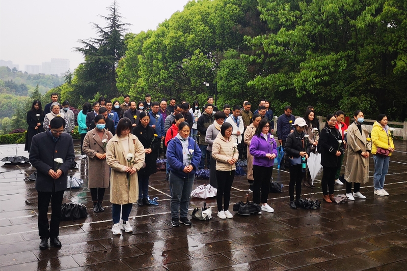 蒙蒙细雨雨中的芜湖烈士陵园翠柏隐隐,草木葱茏。学院全体教师党员在庄严的革命英雄纪念碑前默哀,表达对革命先烈的无限敬仰和哀思,随后一一走上台阶为烈士献上鲜花。教师党员邱意敏表示,一定以革命先烈为楷模,铭记烈士功绩,继承先烈遗志,弘扬革命精神,立足本职岗位,把初心和使命转化为砥砺前行的动力,不断前进。