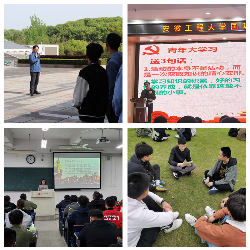 学院各团支部按照“个人自学-集中学习-理论宣讲”相结合原则,组织开展形式多样的学习活动,引导广大团员青年在常学常新中加强理论修养。团员青年个人积极参加“青年大学习·一起学党史”系列网上主题团课、全国大学生党史知识竞答大会等活动,实现个人自学常态化。各团支部围绕新民主主义革命、社会主义革命和建设、改革开放、中国特色社会主义新时代等专题,创新形式,组织集体党史学习会,累计学习达400余次。学院党政班子成员、专兼职团干、辅导员等走上讲台,开展专题学习辅导达20余次。4月17日,学院党委副书记郭全根在芜湖烈士陵园给学院团学骨干讲授一堂微党课,要求团员青年在党史学习教育中率先垂范、主动学习,练就过硬本领,锤炼品德修为。