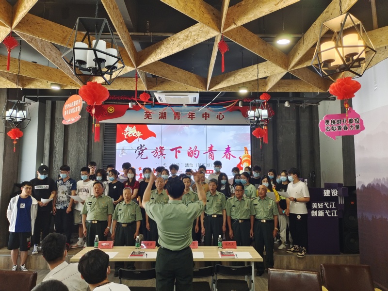 活动分为团队文化建设,“弋”起读原著,学党史测试答题和分享交流等环节。在“弋”起读原著活动中,同学们一起读《习近平的七年知青岁月》,学习习近平总书记青年时代在艰苦环境中磨炼意志和品格的奋斗故事,对习近平总书记作为人民领袖的成长经历有了更为深刻的理解。在测试答题和分享交流环节中,同学们主动思考、积极作答,取得第二名好成绩,并踊跃分享学习体会。最后,老兵合唱团带领大学生一起唱红歌,老一辈军人与新时代大学生共同用歌声抒发我心向党、党在我心的挚爱之情。