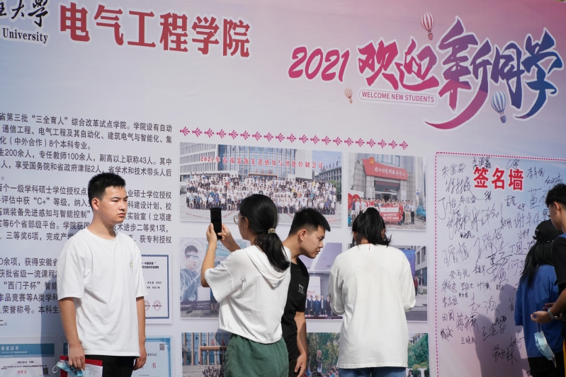 9月11日的迎新当天,一群身着“红马甲”、头戴红色志愿帽的青年志愿者分工明确、有条不紊地穿梭于学校大门口、学院报到点、宿舍楼等。他们热情地接过同学手里的行李,耐心地指导着入学手续的办理,详细地介绍校园基本情况。这些志愿者都是今年的学院2021级新生。