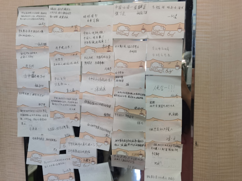 团员青年在加强理论学习的同时,主动思考,分享感悟。自动化202团支部以团小组为单位互相分享党史小故事。同学们深深被革命先辈们无私奉献和艰苦奋斗的精神所震撼,更加坚定了学习报国的决心。电气204团支部同学们沿着革命先驱的足迹,回顾光辉奋斗历程后,重温了入团誓词,并将所思所想写在便利贴上抒发爱国情怀,立志传承与弘扬革命先辈的优良传统美德。电子191团支部同学们从百年历史中汲取智慧和力量,并以寝室为单位,分享了理论学习后个人的心得体会。