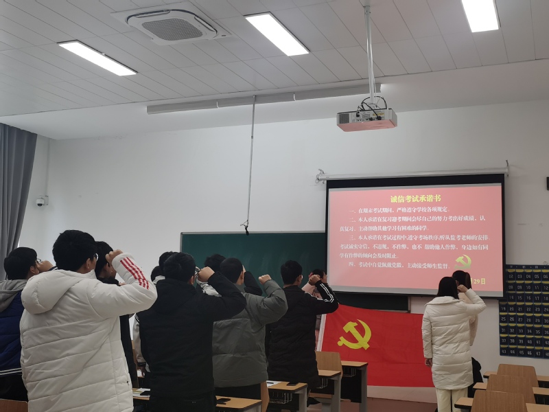 阳岚首先阐述了诚信做人做事的重要意义,他强调党员是发挥示范引领和朋辈教育的重要载体,要主动亮身份做表率营造风清气正的考试氛围。接着他领学了有关考试管理规定,并列举了考试作弊处罚案例做警示教育。最后他带领全体成员在党旗下作出庄严的诚信考试承诺,并要求考试过程中党员要主动佩戴党员徽章接受师生监督。活动中,全体成员还签署了诚信考试承诺书。电科192谢薇表示通过本次主题党日活动,真正理解了党员先锋模范的重要意义。