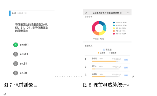 电磁场与电磁波课程对学生的数学和物理基础要求较高,且内容本身前后关联,逻辑性强。学生学后面忘前面,听不懂又不互动的必然结果就是身在教室心在外。解决这一问题的关键在于通过适当的教学重复夯实学生的基础,即使在学时紧张的情况下也不能忽视。对数学、物理等知识的复习可以安排在作业题、课前测试等环节,可以让课程基础知识通过不同形式在课前测试中反复出现,只有经常用才能不容易忘。而且,还可以在学期初就把课程考核知识点设计好,平时教学过程中就强化训练其中的重要知识点,避免出现大面积考核不通过现象。