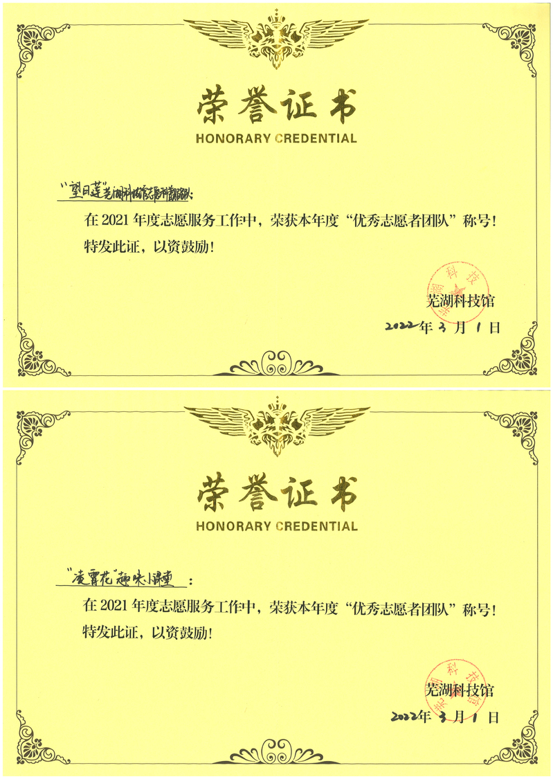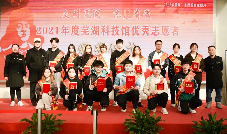 3月5日,芜湖科技馆举行“文明芜湖·志愿有我”——2021年度芜湖科技馆优秀志愿者表彰仪式,小说狂人 “凌霄花”趣味小课堂志愿服务团队和“望日莲”科技馆科普志愿服务团队荣获芜湖科技馆2021年度“优秀志愿者团队”称号;常文卉、肖金凤、孔汉庭、刘逸亭、马冬雪等五名同学荣获芜湖市科技馆2021年度“优秀志愿者”称号。