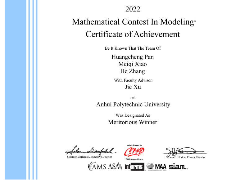学子在2022年美国大学生数学建模竞赛再获佳绩