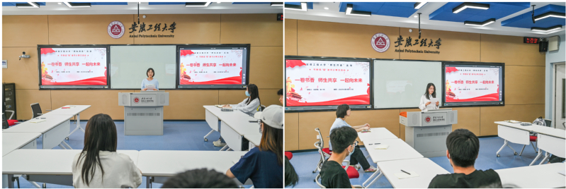 此次“师生共读”活动以“一卷书香,师生共享,一起向未来”为主题。伴随着轻柔的音乐,袁一鸣老师分享了《苏东坡传》,讲述着苏东坡政治卓越、爱民如子、文韬武略兼备的传奇一生,用诗词串起这位一代文豪的人生脉络,让同学们认识了“爱吃”的苏东坡。李永明老师分享了《石评梅传》,从北京市陶然亭公园内的高君宇和石评梅雕像说起,讲述着才女石评梅的爱情悲歌,让同学们认识到了一个才华横溢、坚韧不屈、情坚意深的石评梅。自动化203朱汪瑜同学分享了《活着》,教会我们正确看待生活赋予的责任,正确看待现实给予的幸福和苦难。电气(中外)201张璐瑶分享了《觉醒年代》,书中塑造了李大钊、陈独秀、蔡元培、鲁迅等为灾难深重的中国寻找出路而艰辛探索的知识分子形象,极大鼓舞了同学们。