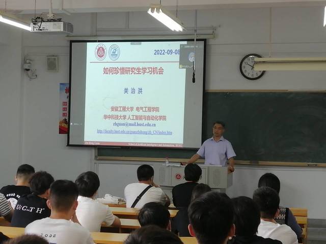 9月8日上午,关治洪为2022级研究生新生主讲了开学第一课,研究生辅导员以及全体142名2022级研究生在主课堂和分课堂同步听课。