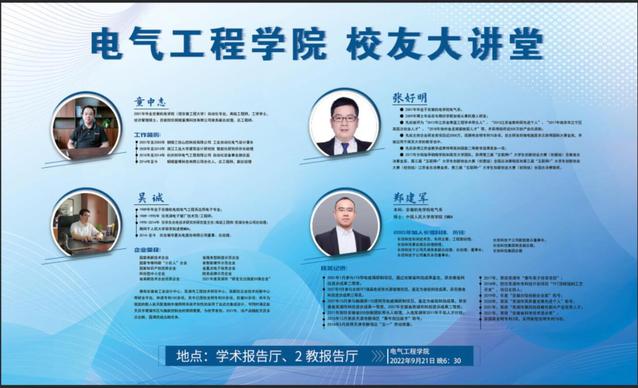 学做新时代电气人——“优秀校友为你讲奋斗”。01届自动化专业、铜陵富博科技总工程师童中志,01届电气系铜陵学院教授张好明,01届自动化专业、长信科技总裁郑建军和89届应用电子专业、华夏光电总经理吴诚4位学长热情真挚的分享了自己的创业经验、人生感悟,在人生规划与职业发展方向上为学弟学妹们提出宝贵建议,引导学弟学妹们树立爱国爱校、科研报国、团结拼搏、健康生活的价值观念,传递了昂扬的斗志,传承了奋斗的精神,展示电气人的精神风貌,激励着新生继往开来,奋发向上。