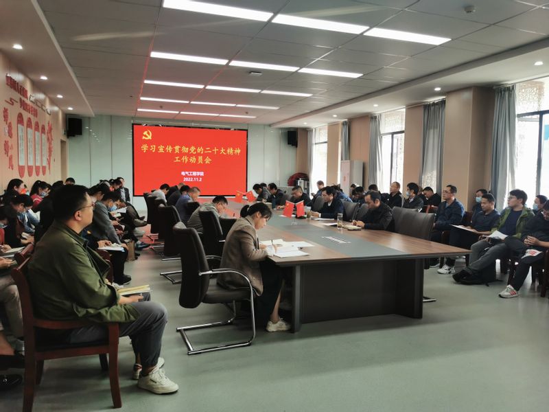 11月2日下午,电气工程学院在国际工程学院校区206会议室召开全体教职工会议。学院党委书记杨会成带领参会人员学习了党的二十大报告。
