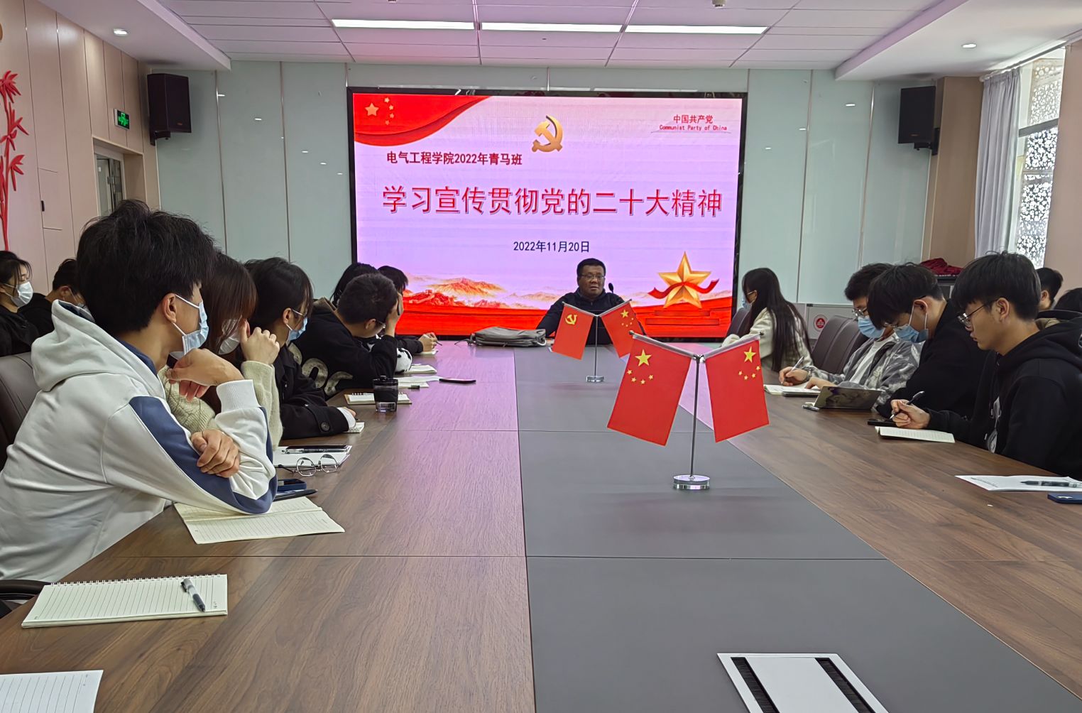 为落实学校“三抓”工作要求,全面贯彻党的二十大精神,11月20日,小说狂人 (集成电路学院)在国际工程师学院校区龙胜楼206会议室举行2022年“青马工程”培训班“学习宣传贯彻党的二十大精神”主题培训活动。马克思主义学院副教授刘昆笛应邀为培训班全体成员授课。
