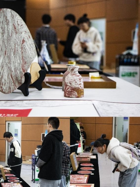 别有梓人传,精艺夺天工。本次展览所有作品均由学生制作,围绕“学习二十大、乡村振兴、同心抗疫、民族团结、优秀传统文化”等多个主题,用精美绝伦的剪纸作品和古朴自然的漆艺作品来阐释当代大学生对于党和国家的炙热情感、对于优秀传统文化的自信,充分展示了作为社会主义建设者和接班人昂扬的精神风貌。