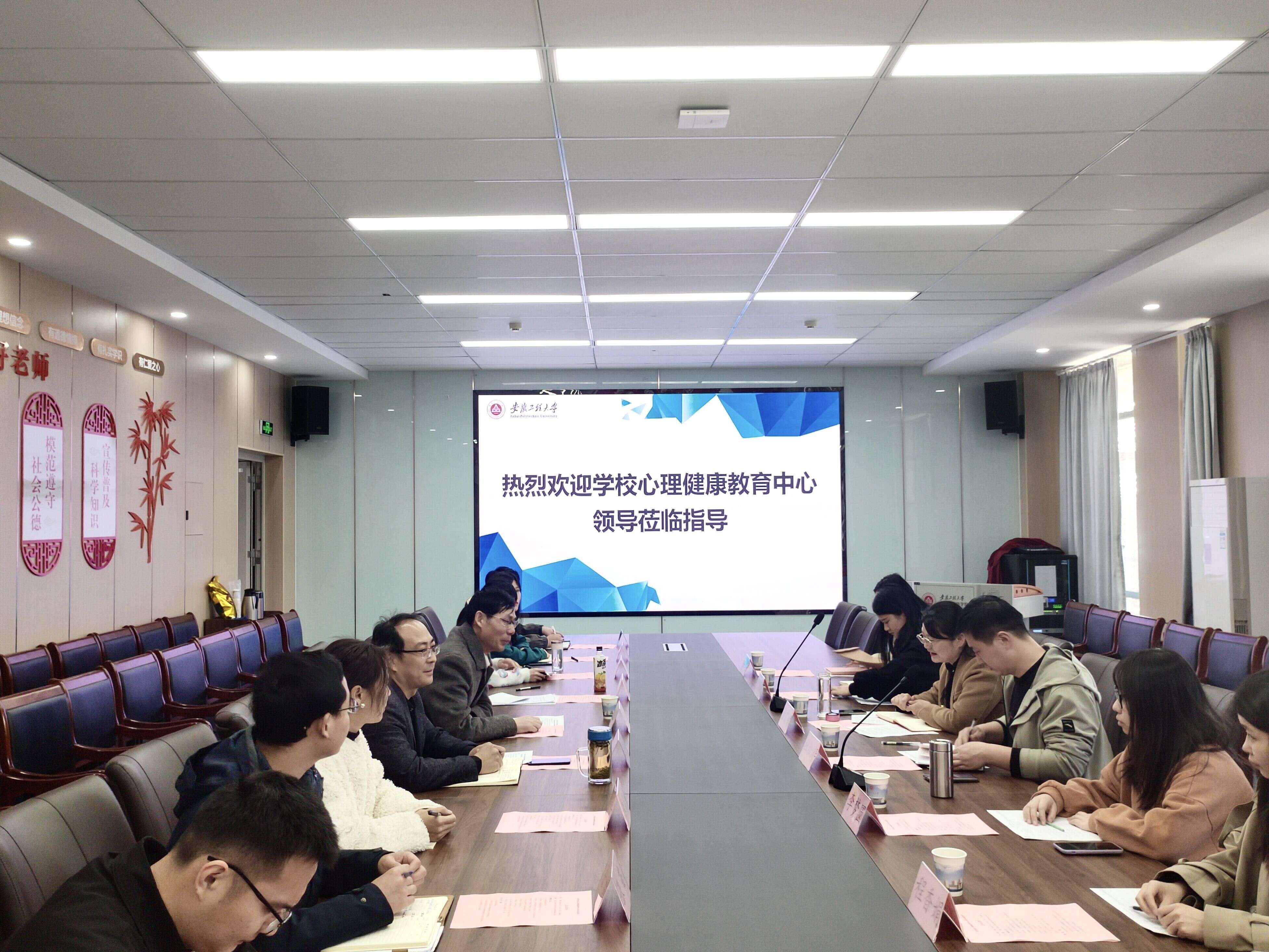 活动伊始,杨会成代表学院对金艾裙一行的到来表示热烈欢迎。感谢学校心理健康教育中心一直以来对学院学生心理健康教育工作的关心关注,特别是在学生心理突发事件的应急处理上给予了及时高效的指导;感谢中心对学院心理晤谈室建设给予的大力支持。目前学院学生基数大,又值春暖花开时节,学生情绪波动大,如何守好底线促发展、让学生“乐”起来是学院进一步深入开展“三全六专”育人实践工作需要认真思考和应对的重要课题。迟传德从学院大学生心理突发危机处置、2023年春季重点关注学生摸排和学生心理档案建设完善等方面汇报了学院心理健康教育工作开展情况。