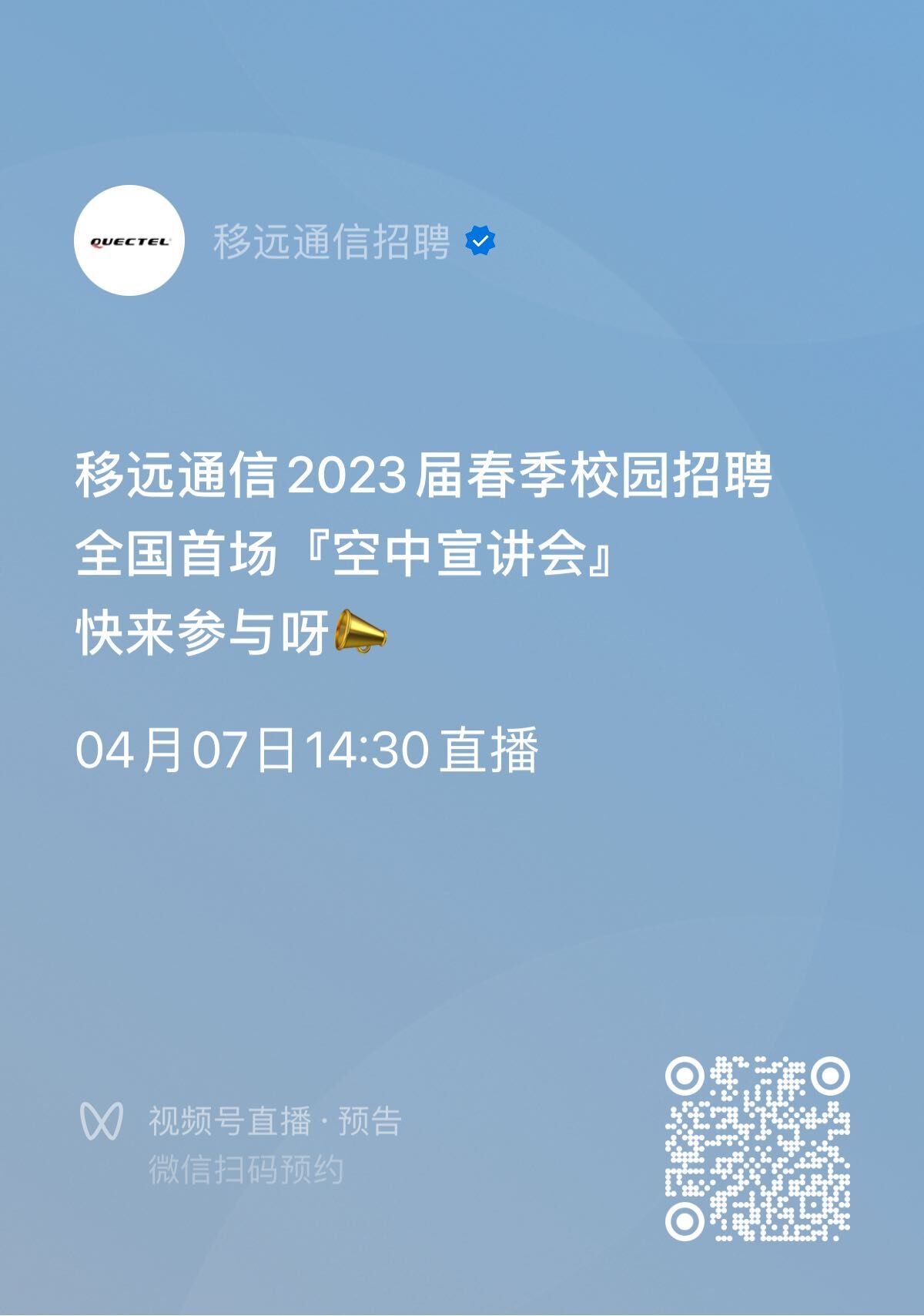 ️微信搜索移远通信招聘视频号,点击关注,预约宣讲会,届时会有消息提醒哦