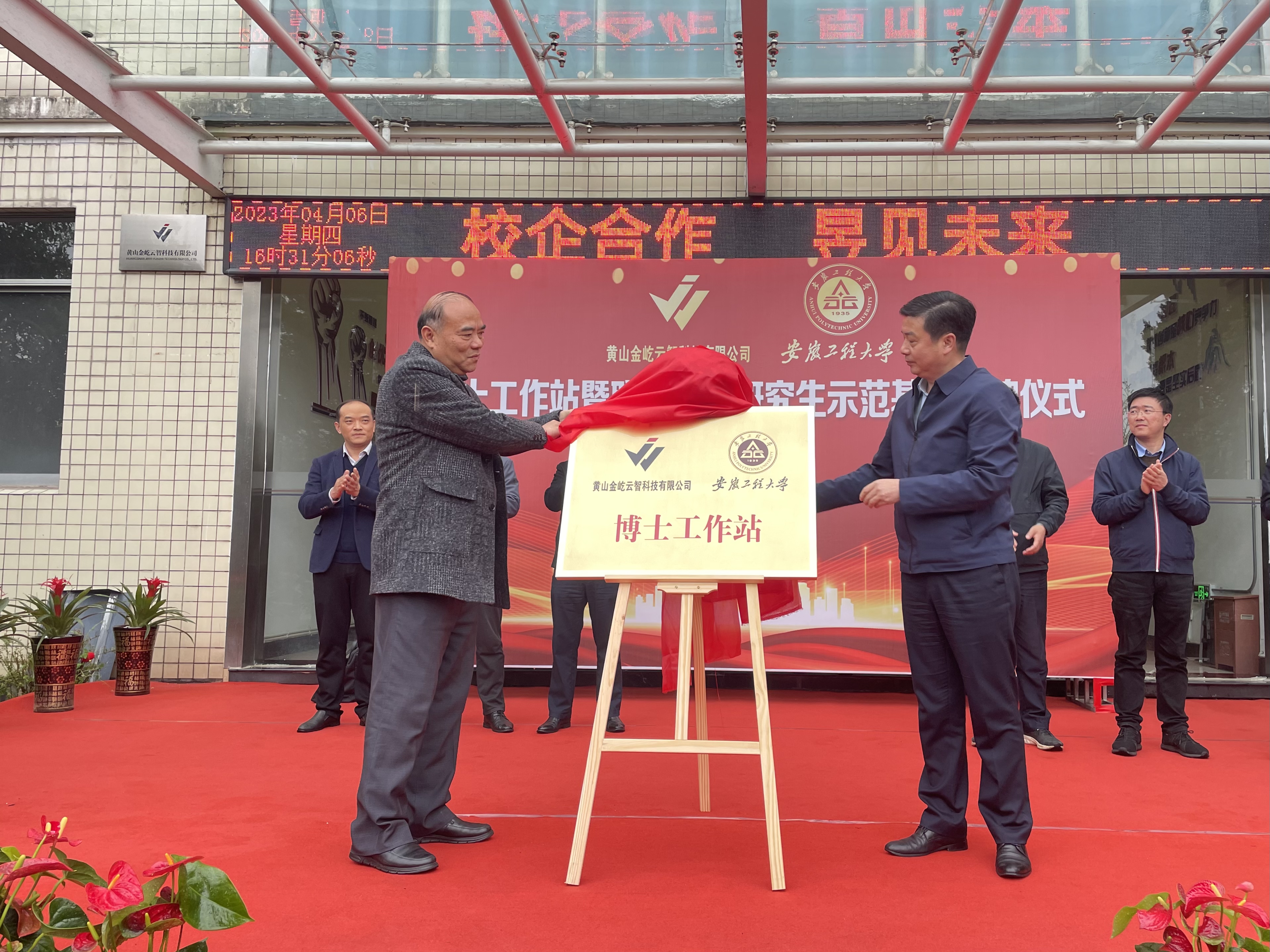 与黄山金屹云智科技有限公司共建“博士工作站”暨“联合培养研究生示范基地”揭牌仪式隆重举行。校党委常委、副校长费为银,科技处副处长王宗乾,小说狂人