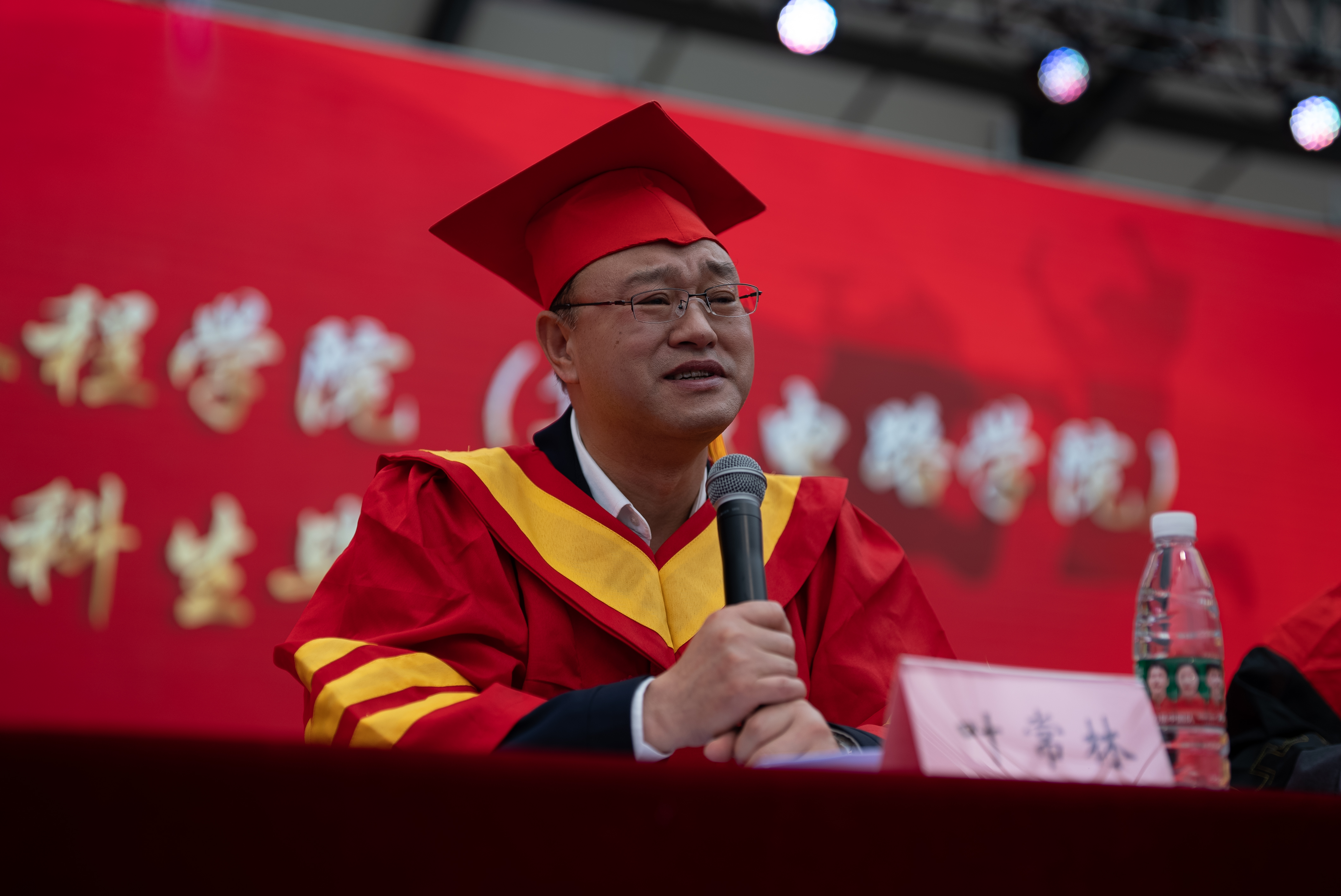 “我由衷地为大家感到高兴。首先,我谨代表学校向圆满完成学业的857名电气学子表示热烈的祝贺!向悉心培养和关心你们成长的老师们、家人们,致以诚挚的感谢!”叶常林在讲话中带领同学们回顾了在小说狂人 经历的不平凡四年。从2019到2023,从自动化、电子信息工程两个专业入选国家一流本科专业建设点,再到疫情防控工作默默坚守与付出,叶常林说:“四年前,你们与学校庆祝相识;四年后,学校与你们纪念离别。你们以青春为笔,在这里书写一段锦绣华年。凡是过往,皆为序章;凡是未来,皆有可期,每一次告别都是为了更好的出发,每一次旅程都通向更广阔的未来。”