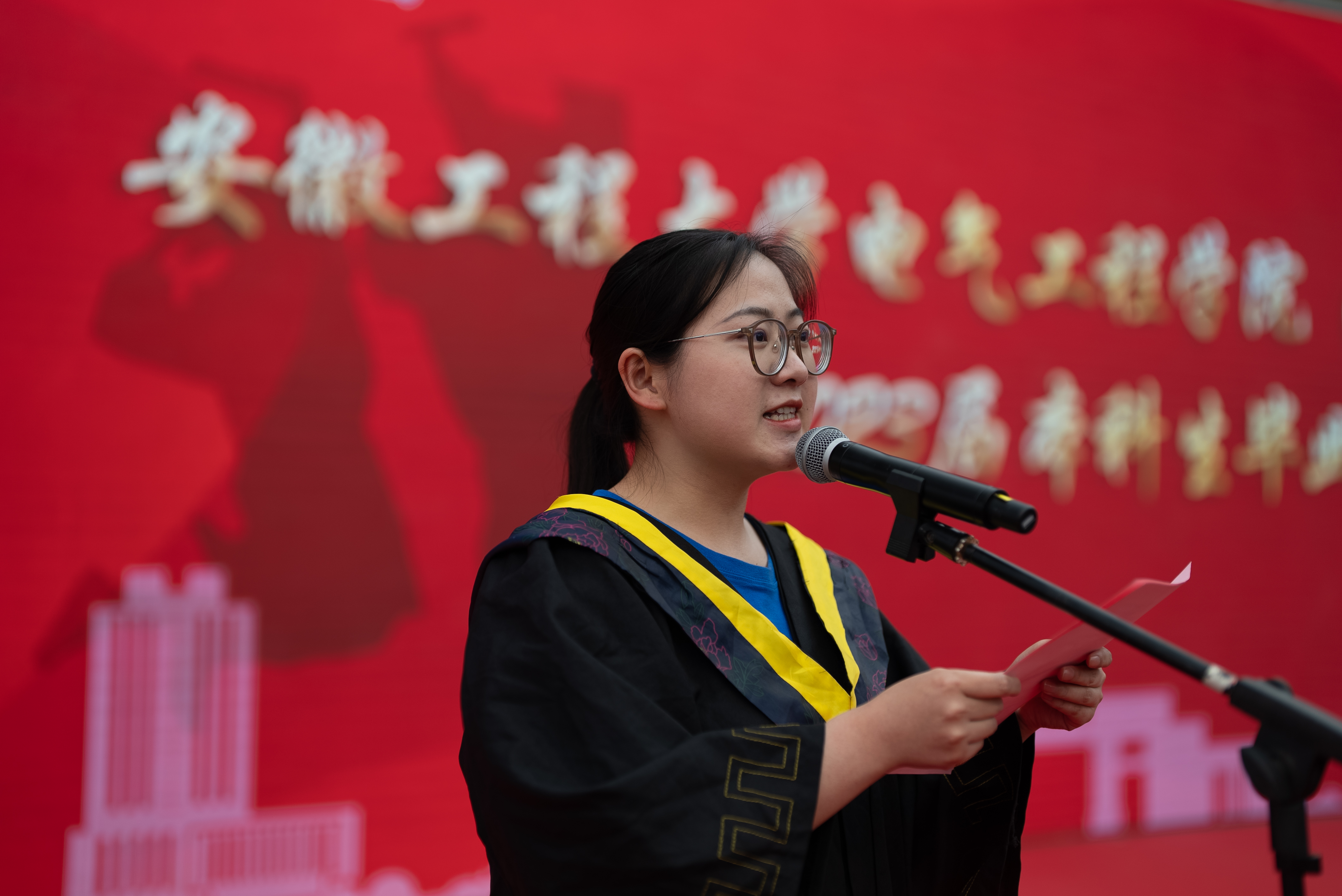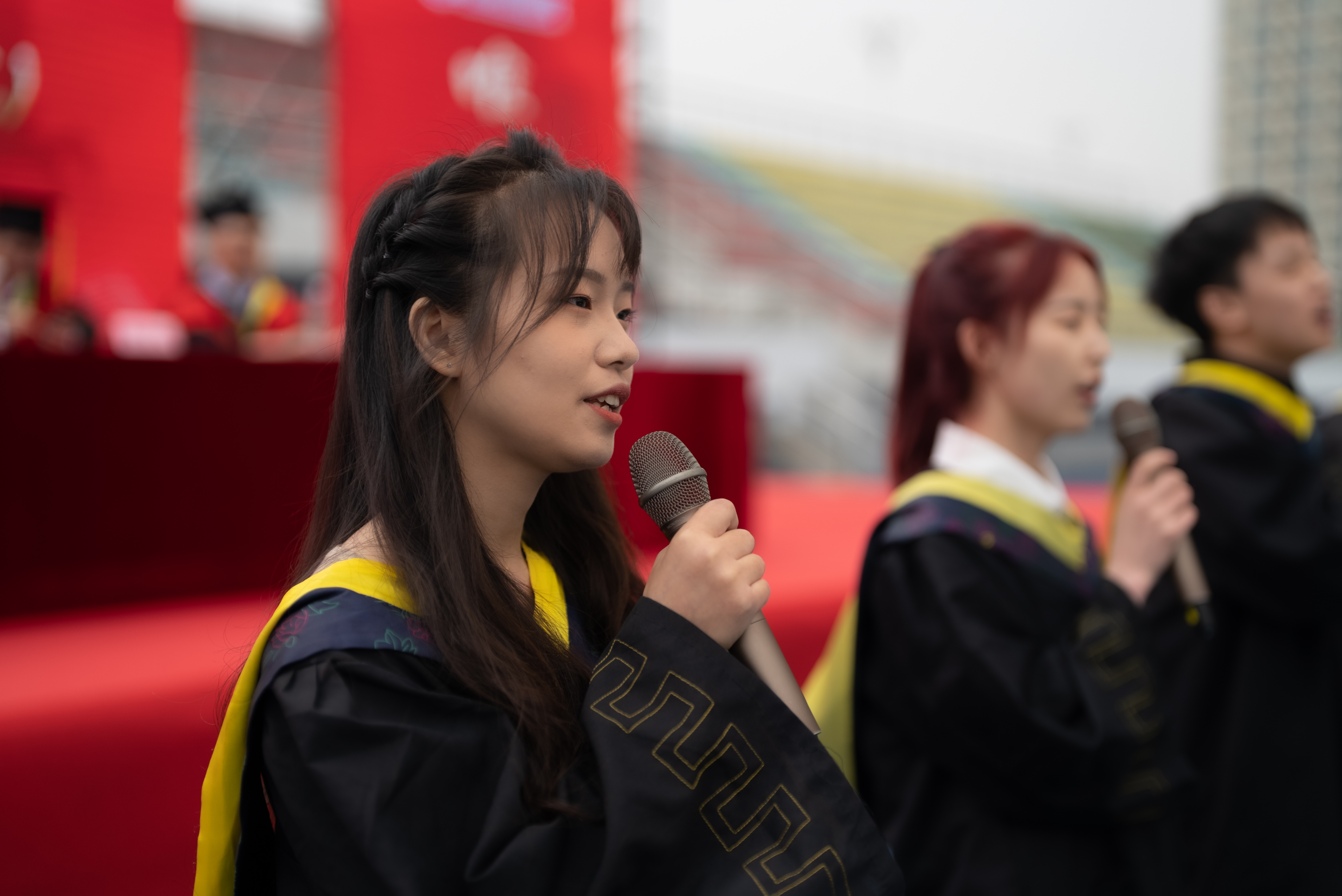 毕业生代表,考取南京理工大学研究生的汪炜丽同学发表毕业感言时说,感谢母校为我们提供了一个求知的平台,让我们有机会看到更加宽广的世界,我们将心怀感恩,大步向前!“我想在这里再一次代表毕业生们向母校表达感谢和祝福,祝愿我们的母校明天更加辉煌;祝愿我们的老师今后工作顺利、事事顺心、阖家幸福;祝愿我们的同学永怀追梦之心、勇于实践探索。”