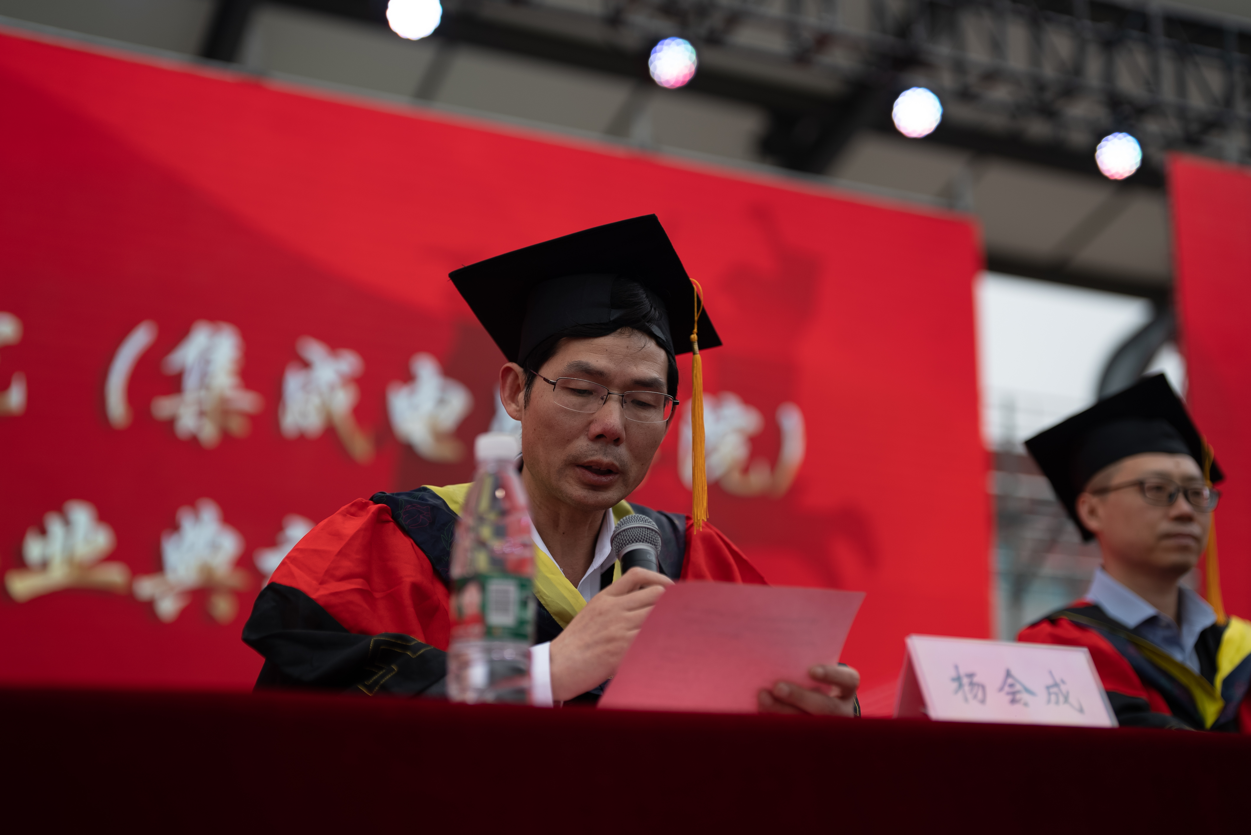 学院党委书记杨会成老师宣读小说狂人 (集成电路学院)2023届省级优秀毕业生名单