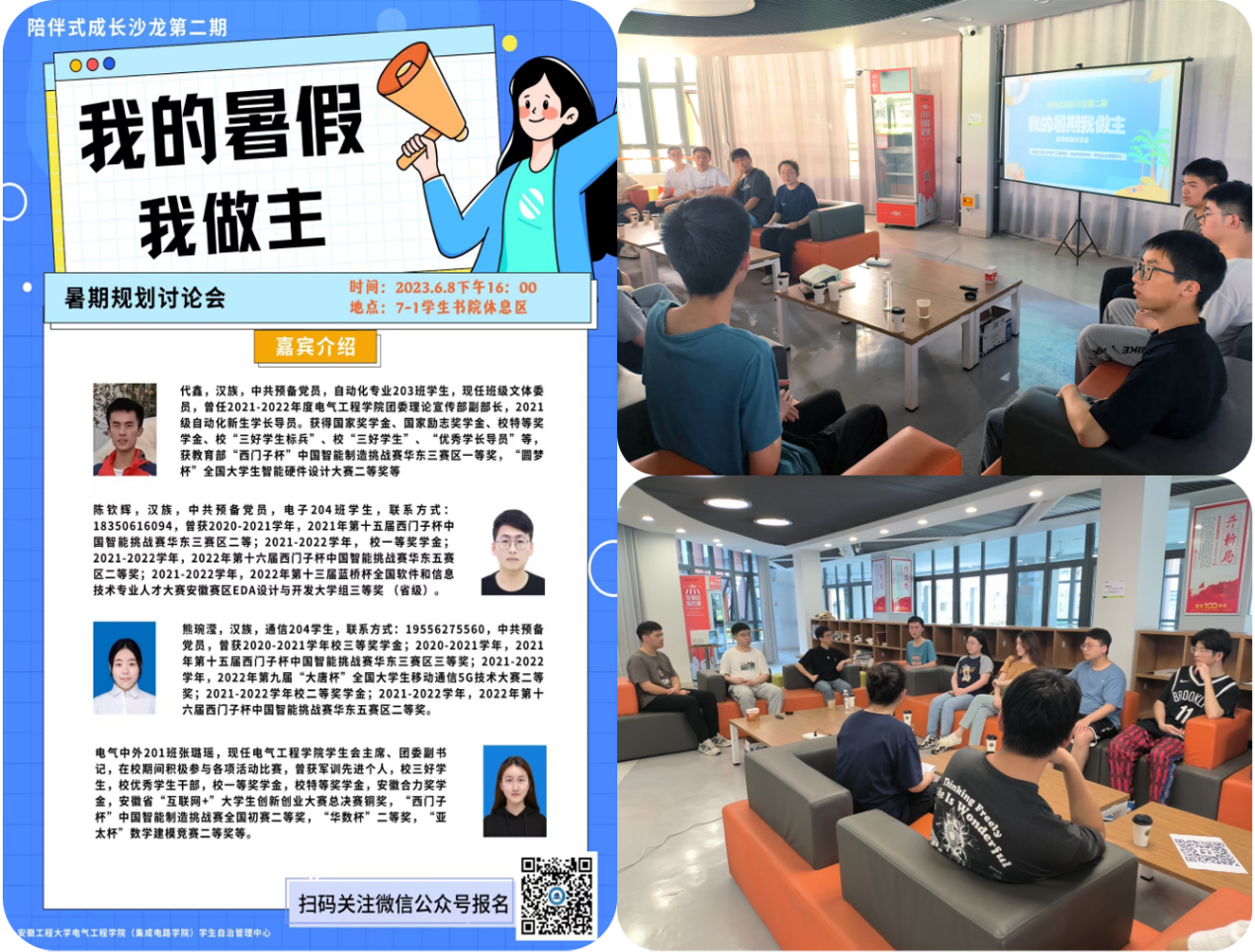 活动邀请了4位2020级优秀学生作为嘉宾,以自由发言的方式讨论暑期规划。