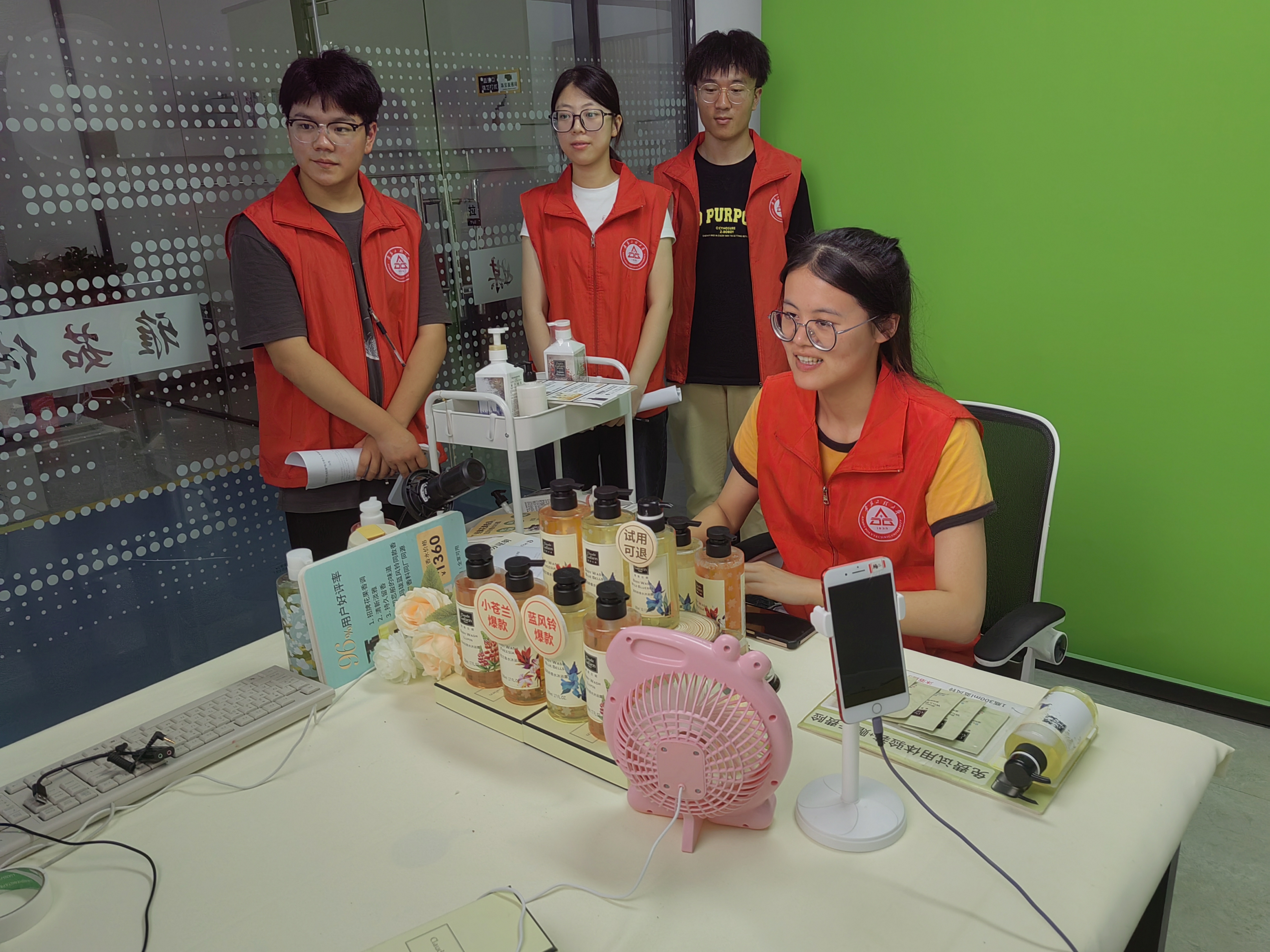 在繁昌数字经济产业园,调研团队走访了安徽省繁昌县雅茹化妆品商贸有限公司,调研返乡青年新就业形态情况。队员们在工作大厅与企业返乡青年员工详细交流,了解从事农村电商的收入、工作时长、工作内容等具体情况。在雅茹直播间,团队成员纷纷化身“带货主播”,有模有样地在镜头前推介着一件件繁昌本地特色产品,详细解读,有的表演才艺,烘托氛围。电子223班的高伟说道,这是自己第一次亲自体验“直播带货”,感觉十分有趣,更没有想到在乡村当地,也能顺势抓住新就业形态发展的风口,蓬勃发展,给乡村经济高质量发展注入了新动能,也给自己未来就业提供了新的思路。
