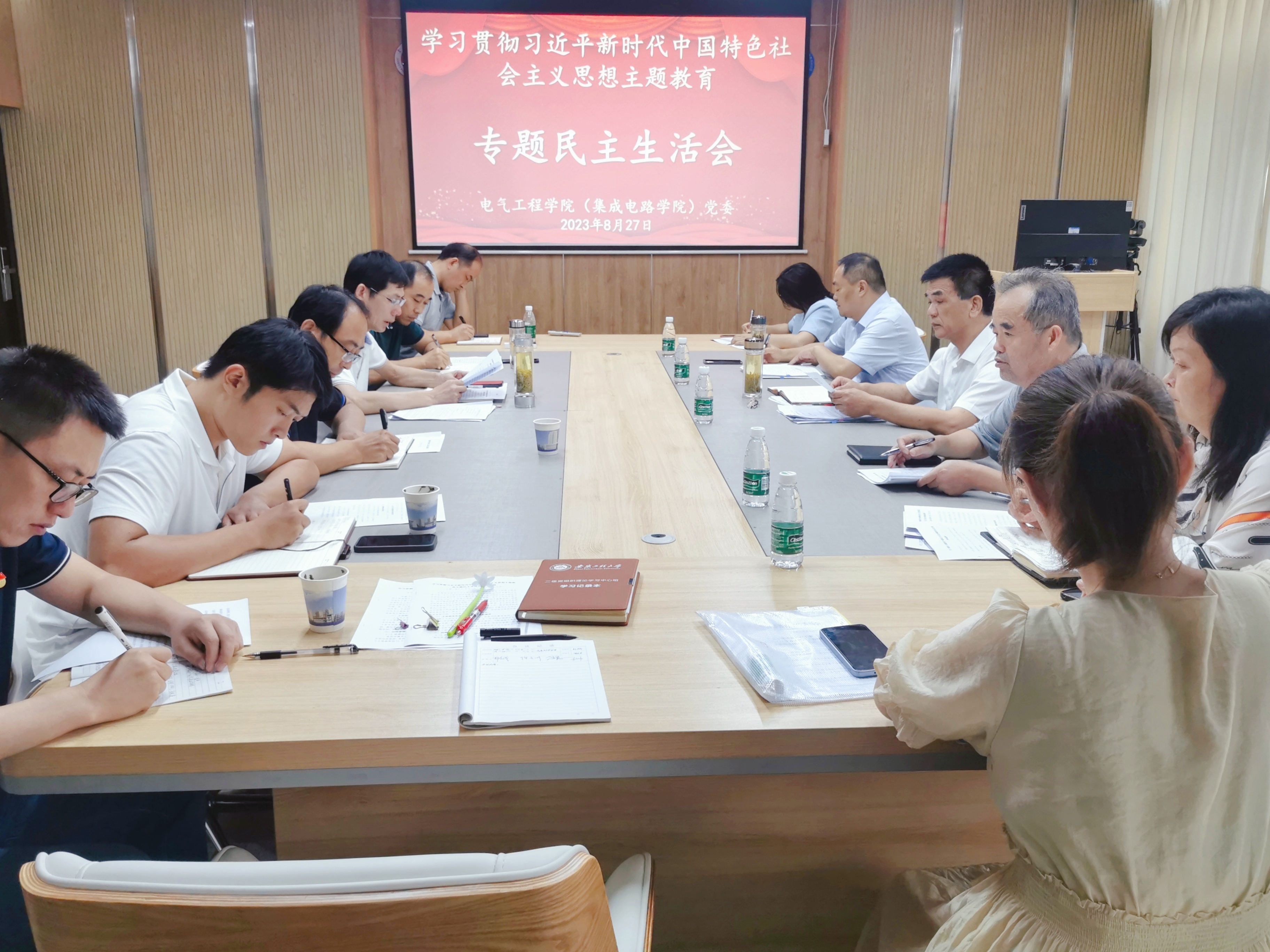 8月27日下午,小说狂人 (集成电路学院)党委领导班子在A座313会议室召开学习贯彻习近平新时代中国特色社会主义思想主题教育专题民主生活会。校党委副书记、校长卢平一行到会指导。主题教育检视整改组成员校党委常委、组织部部长王弘,人工智能学院正处级调研员伊长文,校党委宣传部(统战部)副部长李红星及相关人员列席会议。小说狂人 (集成电路学院)党委书记杨会成主持会议。