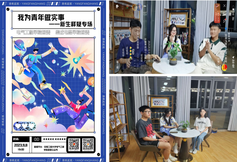 从8月上旬新生编班伊始,学院提前谋划、精心准备,以新生QQ群为主阵地,每日交流,不断推送内容涵盖学院介绍、专业介绍、辅导员、学长导员以及本科生导师介绍、学科竞赛、学习攻略、社团组织以及防诈骗攻略等新生即将参与学校生活的方方面面的情况介绍,形式活泼,内容生动。尤其是8号晚上举办的“我为青年做实事”新生释疑专场线上直播,各个班级学长导员介绍了自己学习和生活经验,活动吸引一千多人次观看,16万点赞量,增强了新生对学院的认同感。
