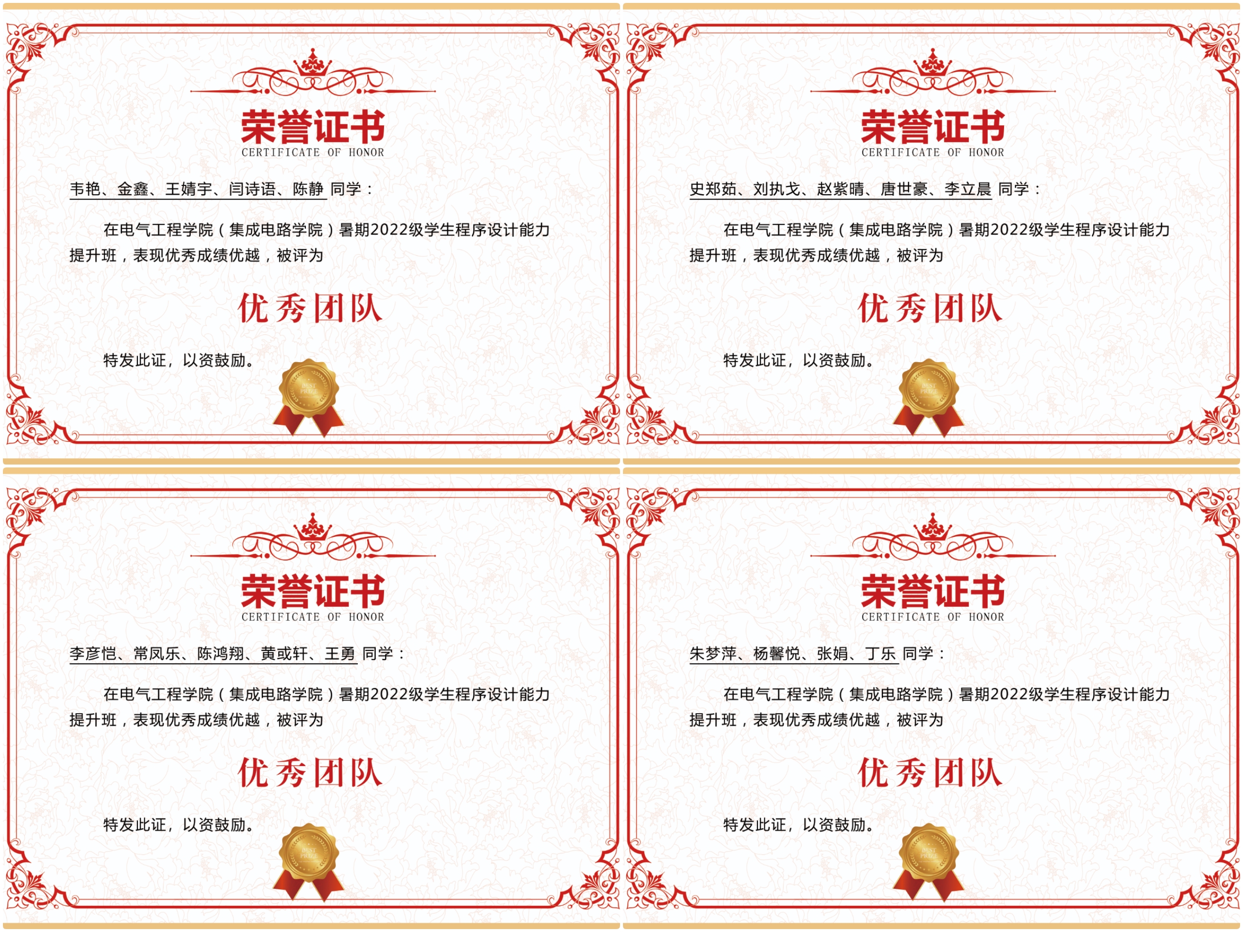 学院根据同学们在学习通提交的作业以及项目执行各阶段的成果,开展表彰活动,组织评出一、二、三等奖团队和优秀个人,激发学生集体荣誉感和成就感。