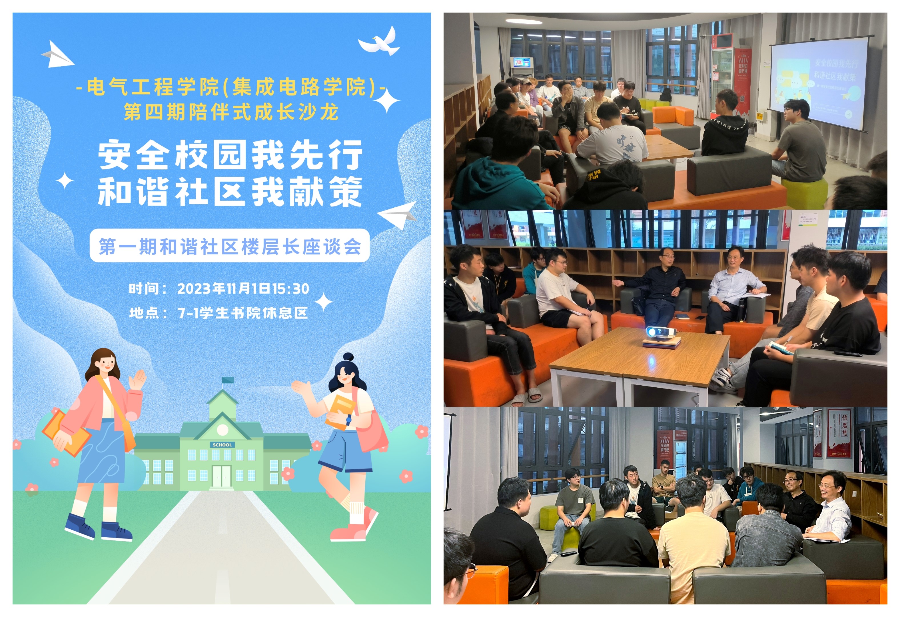 (集成电路学院)在新校区7-1学生书院开展了题为“安全校园我先行,和谐社区我献策”的第一期和谐社区楼层长座谈会暨第四期陪伴式成长沙龙。