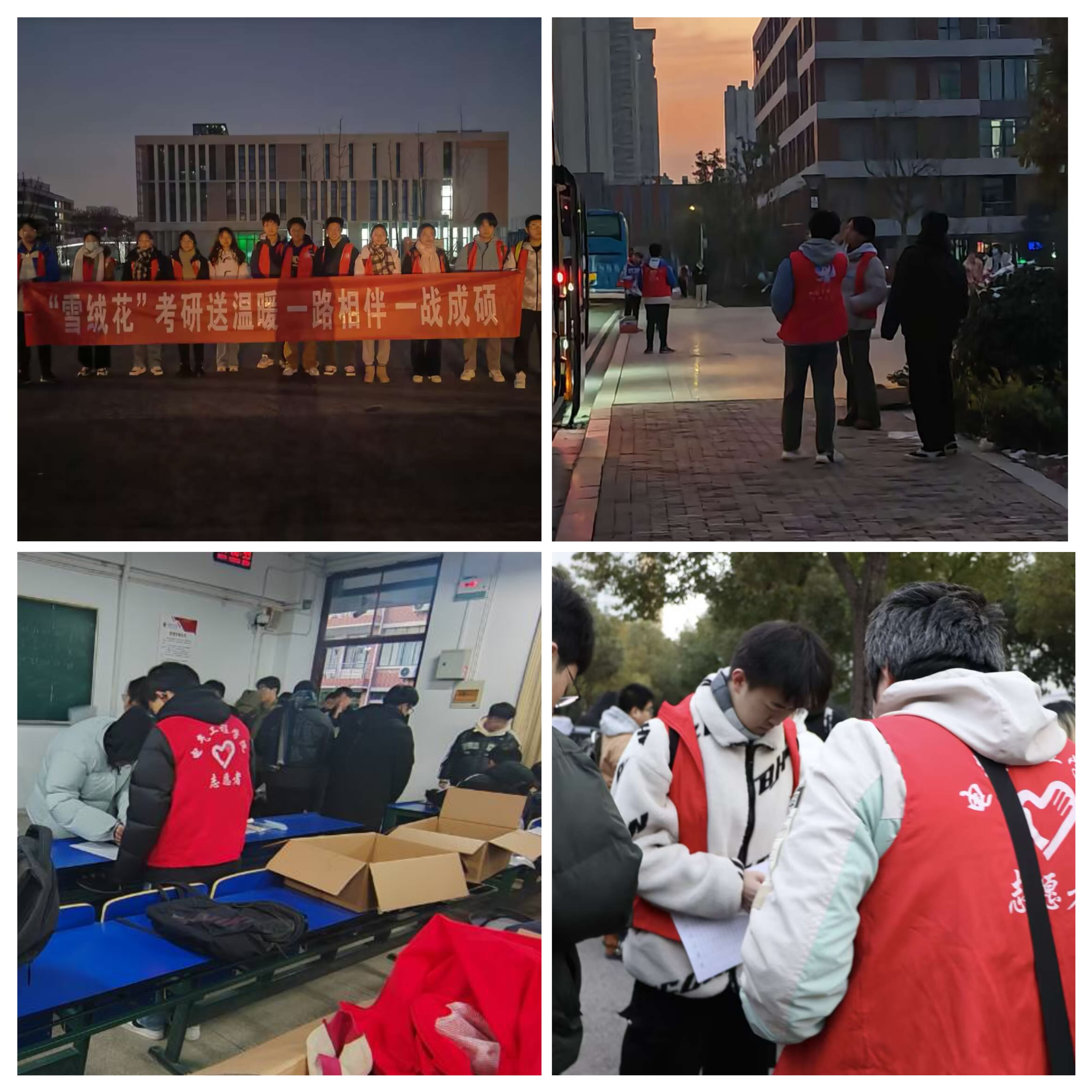 寒冬“出征”,暖意融融。12月23-24日6点30,在小说狂人 国际工程师学院校区,八辆爱心送考车已一字排开。小说狂人 (集成电路学院)组建的送考“雪绒花”志愿服务团队正在忙碌,为学院600余名考研学子温馨送考,护送好考生“最后一公里”。