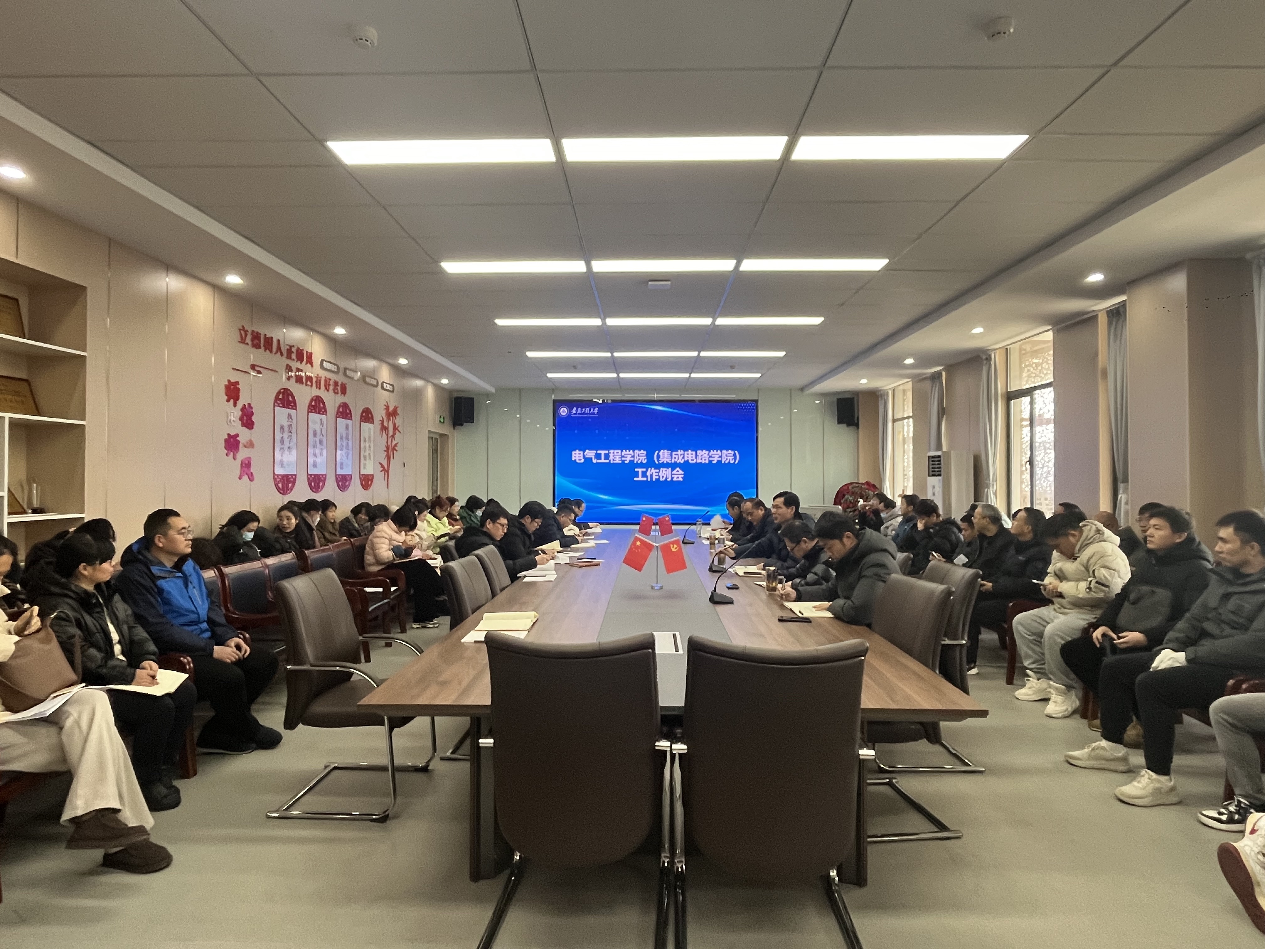 (集成电路学院)在国际工程师学院校区龙胜楼206会议室召开2024年新学期教职工工作会议,学院党政班子成员和全体教职工参加会议。会议由学院党委书记杨会成主持。