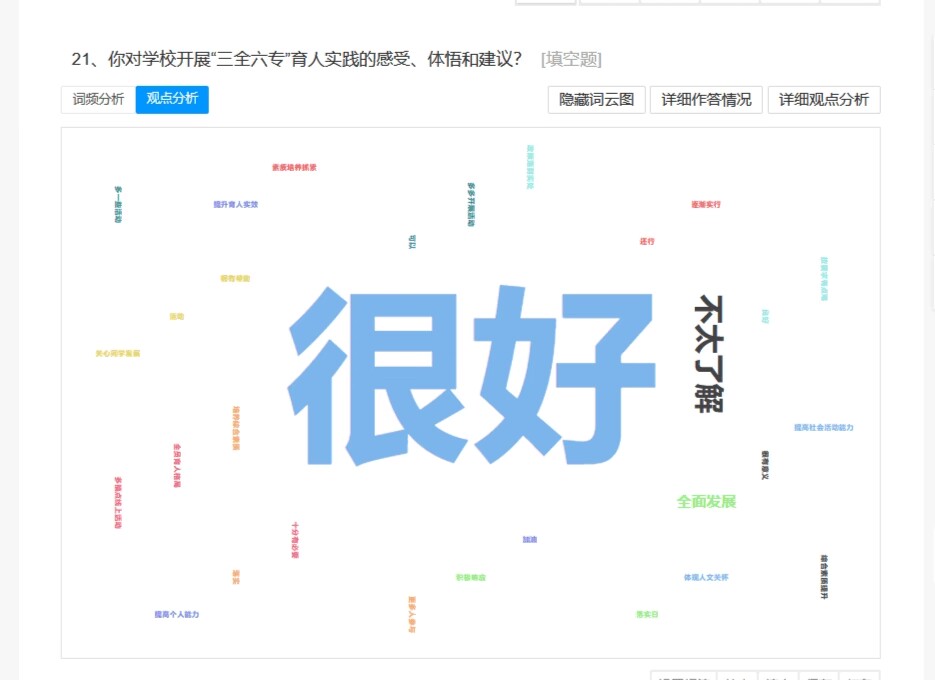 思想动态调研是学院坚持以学生为中心,打造“有温度”的教育的具体体现。接下来,学院将进一步细致梳理学生所反映的问题,做好问题的解决及反馈,扎实做好学生教育管理工作,积极服务学生成长成才,助力学生全面发展。
