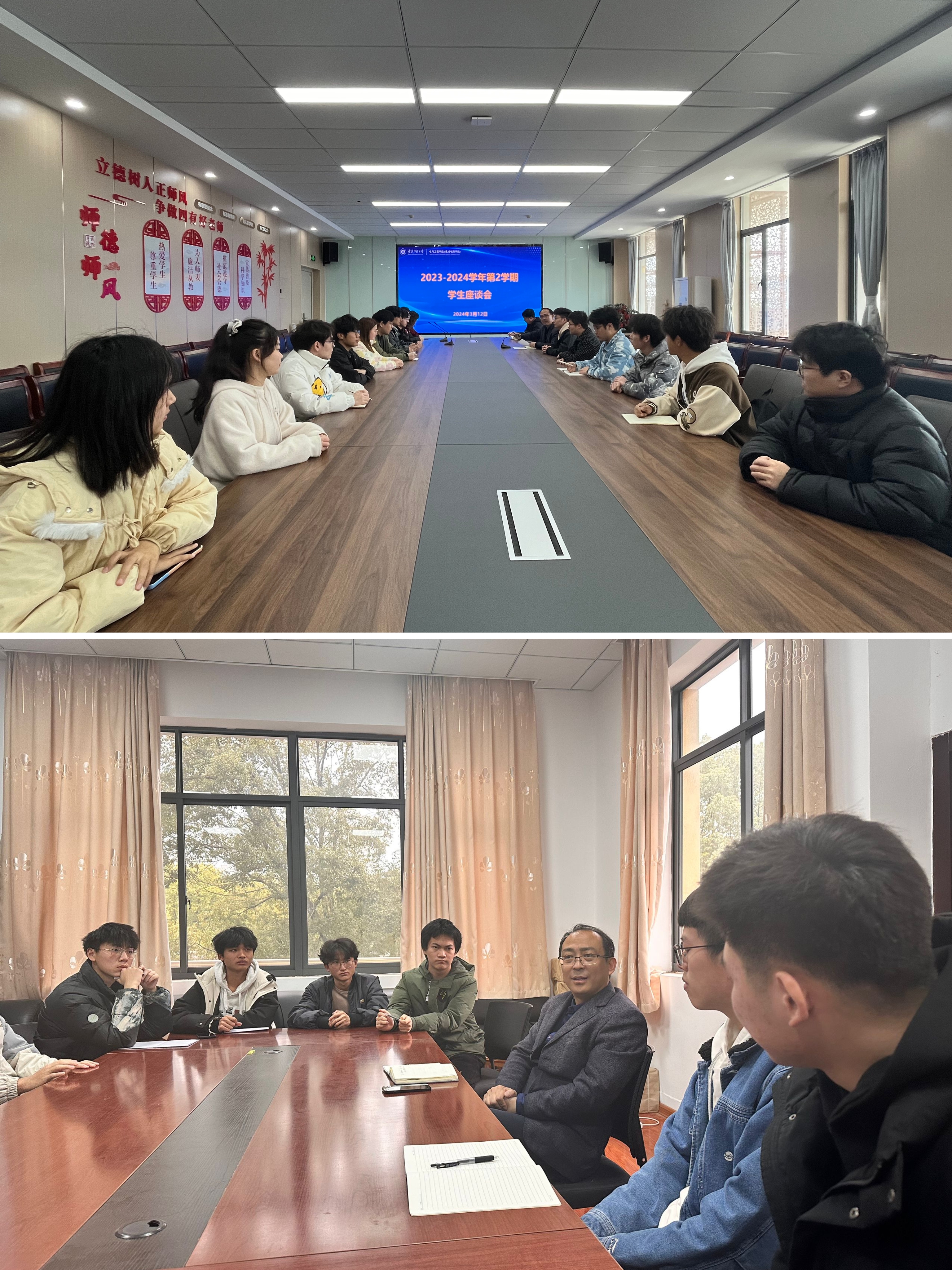 举行座谈交流,直面学生诉求。3月12日、13日,学院在本部和国际工程师学院校区分别召开新学期学生思想动态调研座谈会,学院党委副书记迟传德、辅导员和各年级各专业学生代表、学生社团和团学骨干代表参会座谈会上,迟传德针对学生所提出的关于学习生活、就业、考研等方面的问题与疑惑,逐一给予了回应。他强调,新学期开始,要调节好个人状态,全身心投入学习当中,牢牢掌握所学知识,要学有所思、学有所悟、学有所获,他期待看到每一位学子能在学校学有所成,都能以靓丽的姿态走向工作岗位。