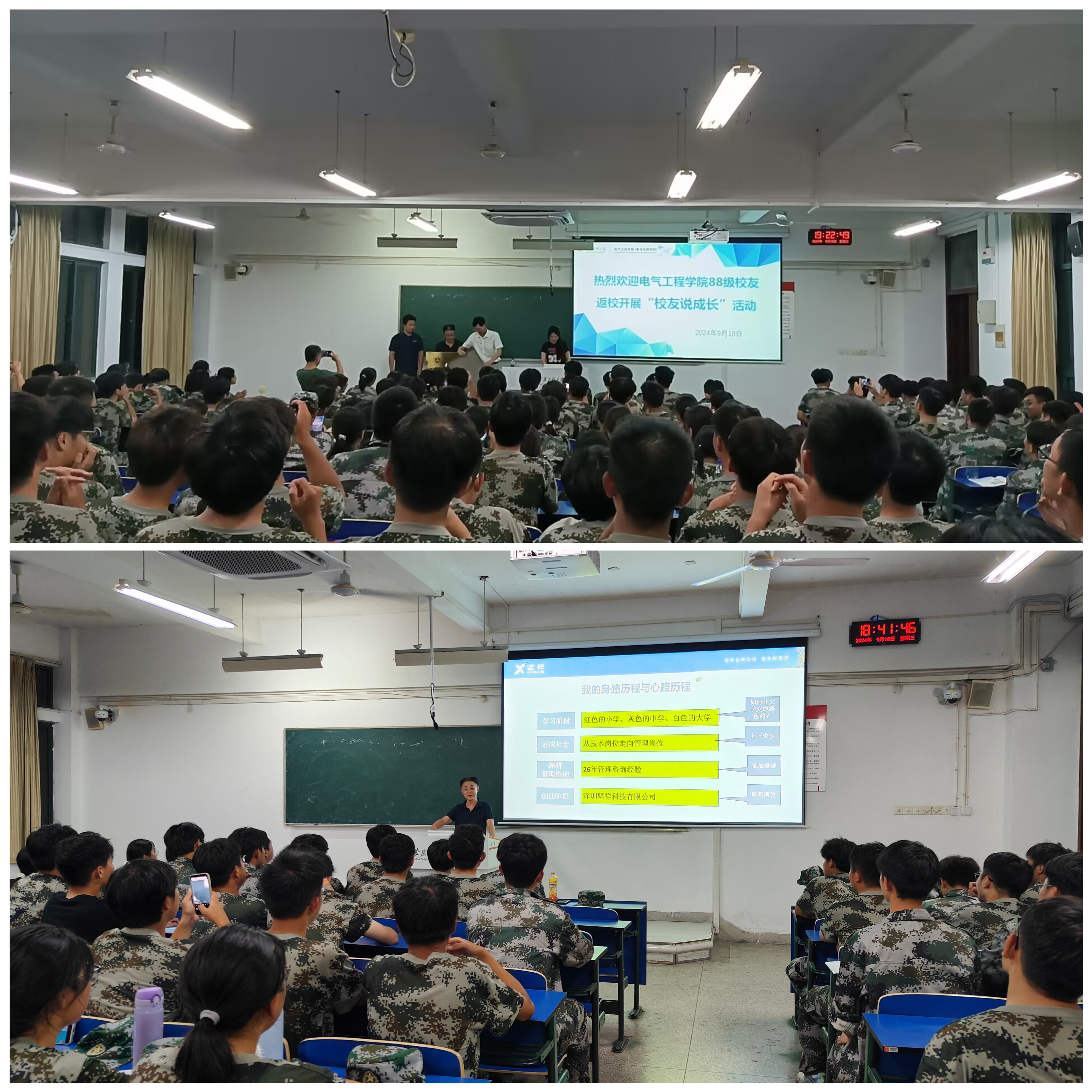 随后,校友樊坚强结合自身的生活经历和成长故事、职业经历等,分享了在面对职业挑战时的应对策略和成功经验,为在座的学生们提供了宝贵的职业规划建议,也为学生们树立了可借鉴的榜样。他强调职业规划的重要性,鼓励学生们要早做规划、明确目标,并付诸实践,最后鼓励学生们要紧跟时代步伐,不断提升自己的专业技能和综合素质,以适应未来职场的需求。