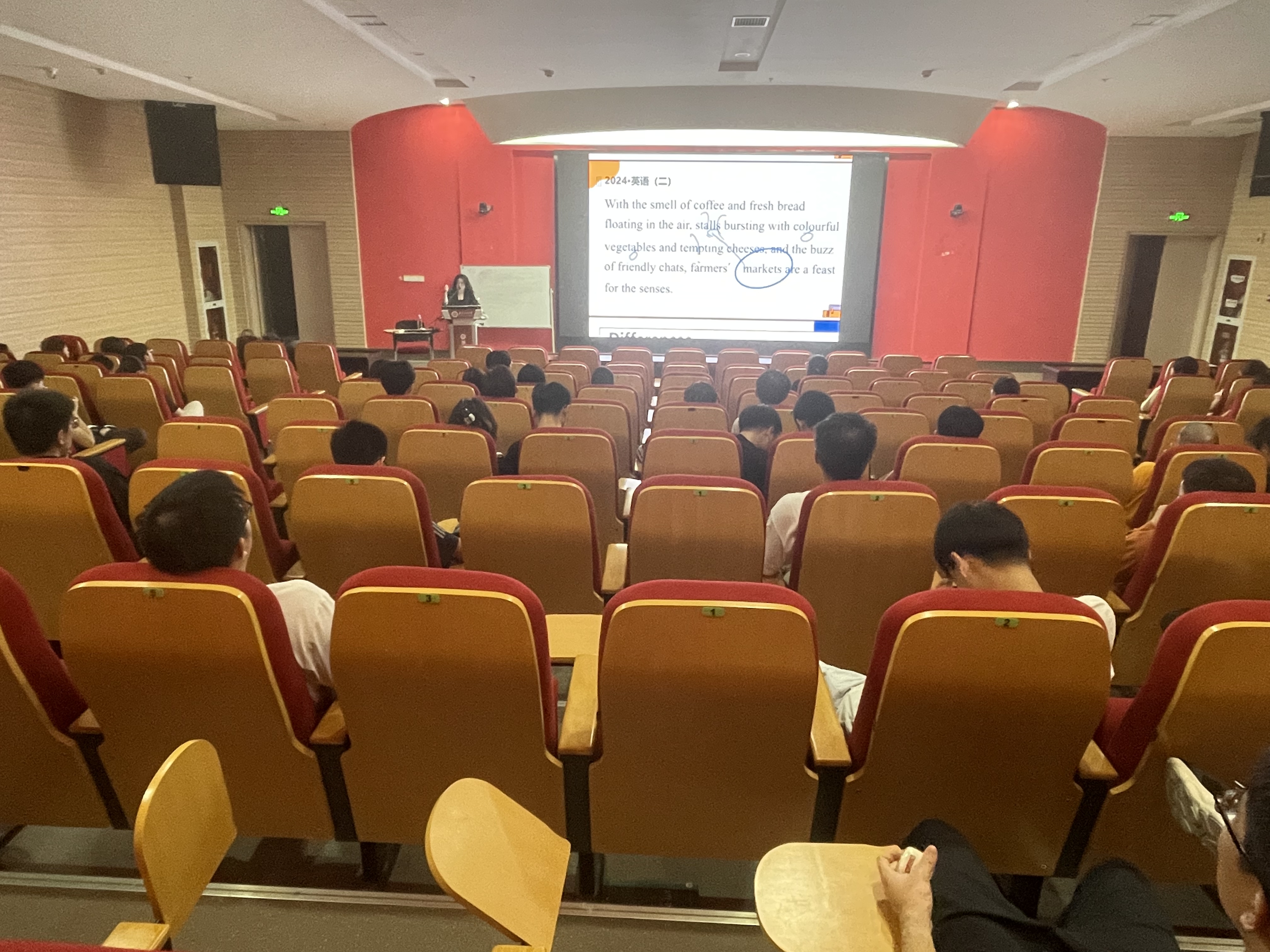 主讲人结合近年全国考生以及本院录取考研考生英语成绩对比数据,分析了当下考研英语形势。讲座期间,主讲人就“考英一还是英二”“如何学好考研英语”方面展开讲座,聚焦学风,找准需求。详细讲解了考研解题思路、解题技巧,强化考研英语词句篇复习的提高方法。讲座现场互动交流频繁,主讲人鼓励同学们保持良好的心态,积极面对考试挑战,灵活调整备考策略,活动赢得了师生们的点赞。