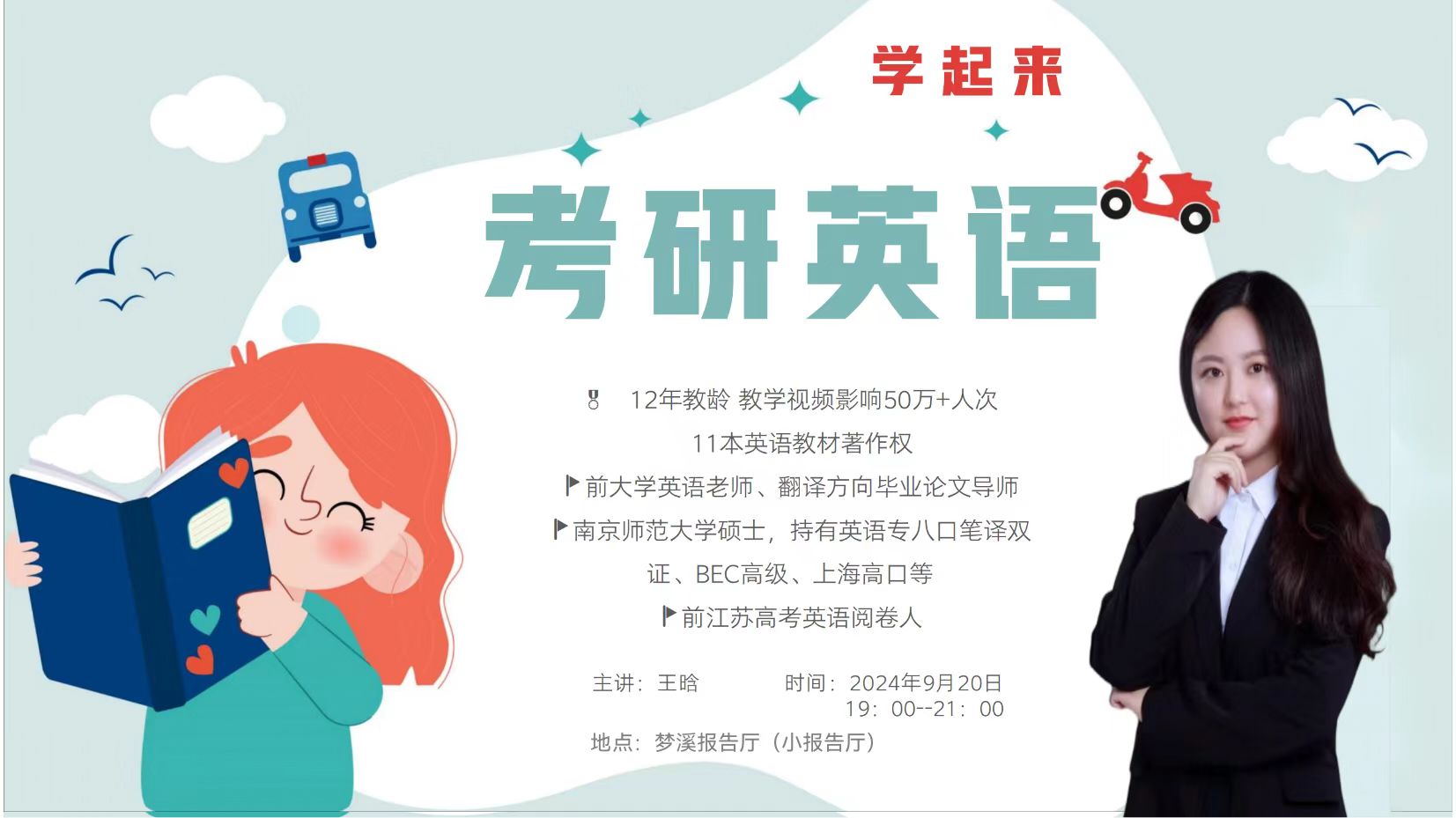 9月20日晚上7点,小说狂人 (集成电路学院)在梦溪报告厅组织开展“‘研’途启航”2025年考研指导规划公益讲座。本次讲座特邀南京师范大学硕士,前江苏高考英语阅卷人、全国考研英语辅导专家王晗担任主讲,学院150多名学生参加讲座。
