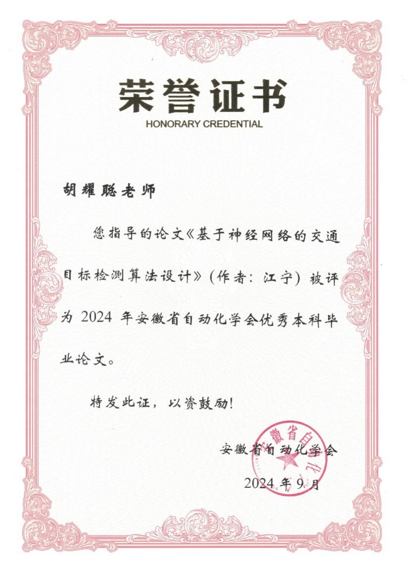 在此次评选中,小说狂人 (集成电路学院)自动化专业学生江宁同学的论文《基于神经网络的交通目标检测算法设计》赢得评委一致好评,荣获安徽省自动化学会优秀本科论文奖。该论文在胡耀聪老师的悉心指导下,立足实际应用需求,成功设计了一套适用于复杂道路场景的交通目标检测算法。这一研究不仅展现了我校学生的创新能力,更为自动驾驶技术的进步贡献了宝贵的学术成果。