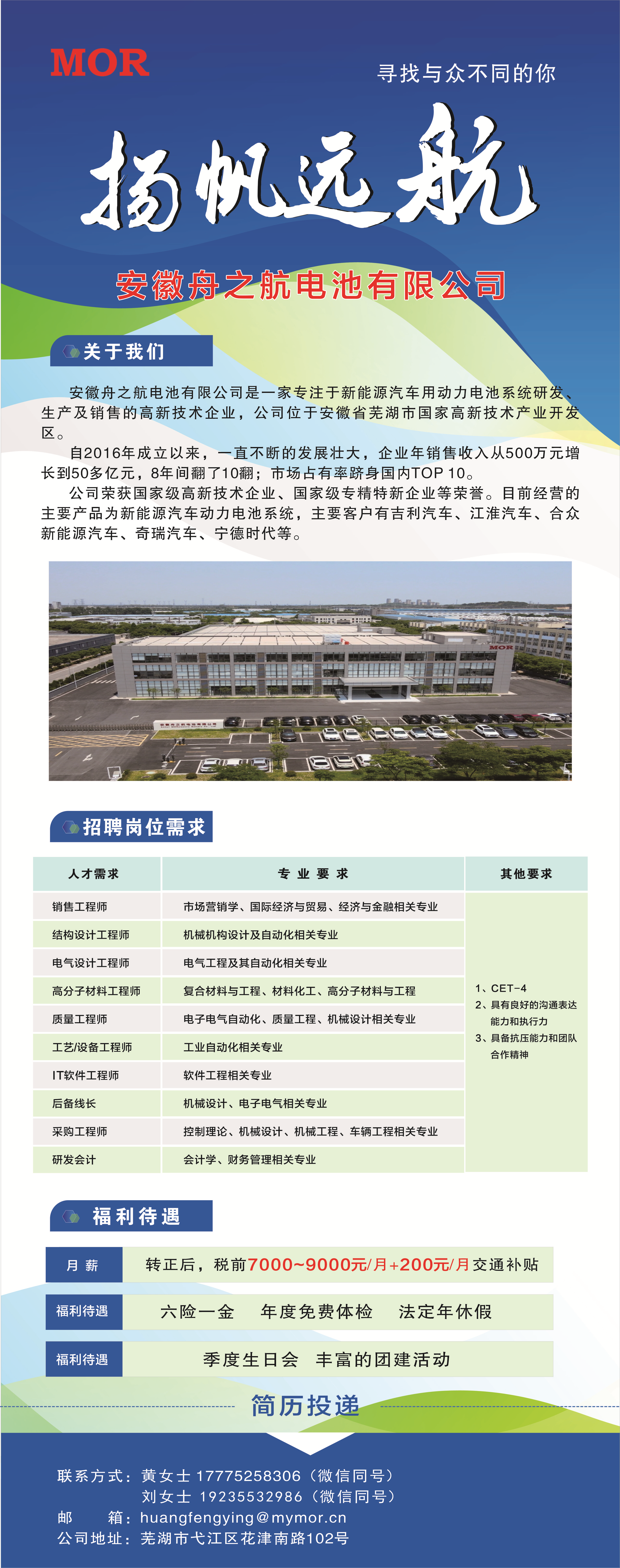 安徽舟之航电池有限公司招聘简章及宣讲安排