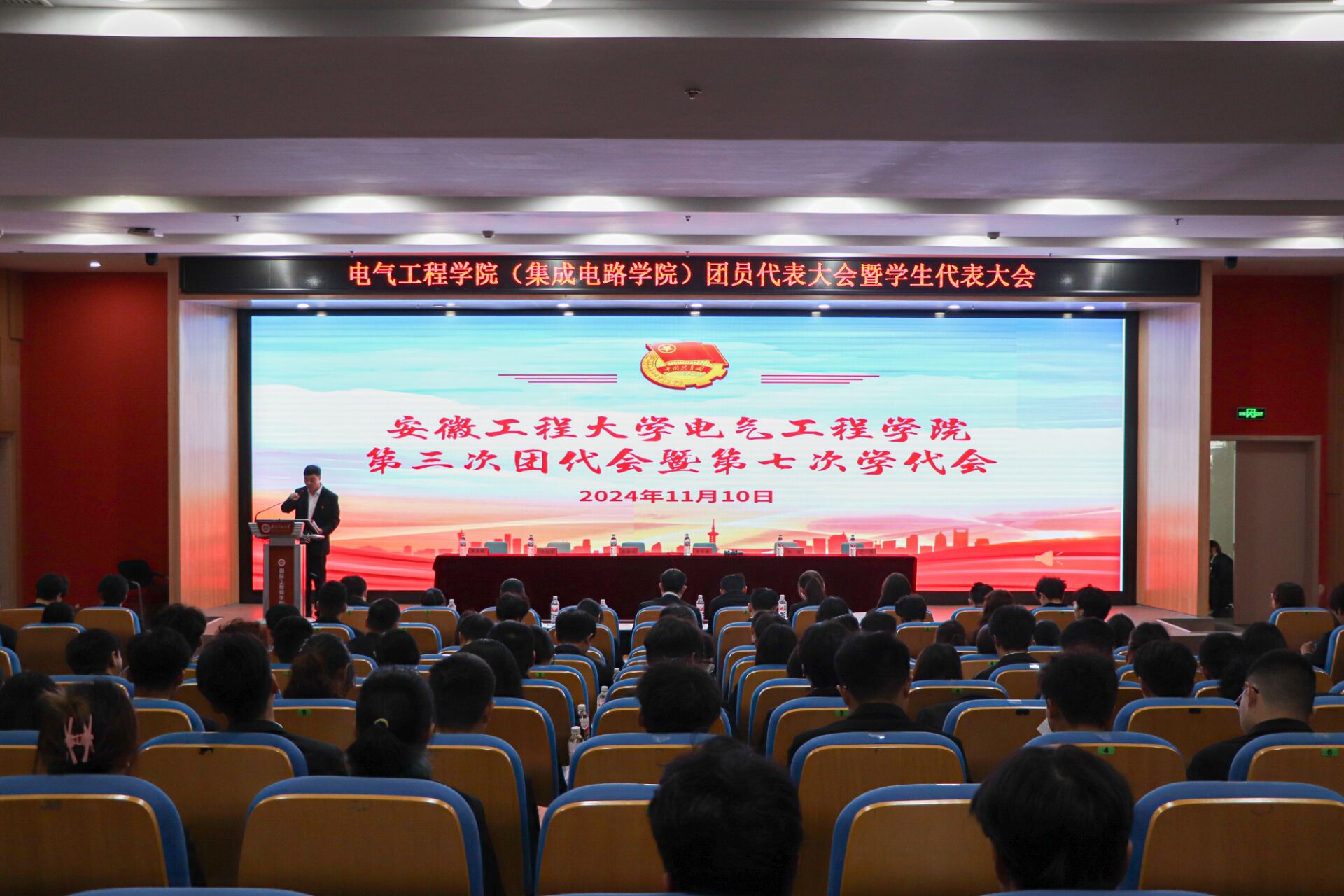 在赤铸报告厅会场,大会听取、审议并通过了张亚暾同志所作的《挺膺担当励青春 奋楫扬帆起新程 团结带领学院团员青年书写青春华章》团委工作报告、叶文汇同学所作的《守正创新 锐意进取 踔厉奋发 勇毅前行 牢记初心使命践行服务宗旨》学生委员会工作报告、郑浩霆同学所作的《志存高远 脚踏实地 团结带领广大青年在新时代更具影响力、凝聚力、感召力》学生会组织主席团工作报告。大会选举产生了学院第三届共青团委员会、第七届学生委员会和新一届学生会组织主席团以及出席学校“两代会”的代表。张亚暾等7人当选为第三届团委会委员,李士超等16人当选为第七届学生委员会委员,姚杰等3人当选为新一届学生会组织主席团成员。