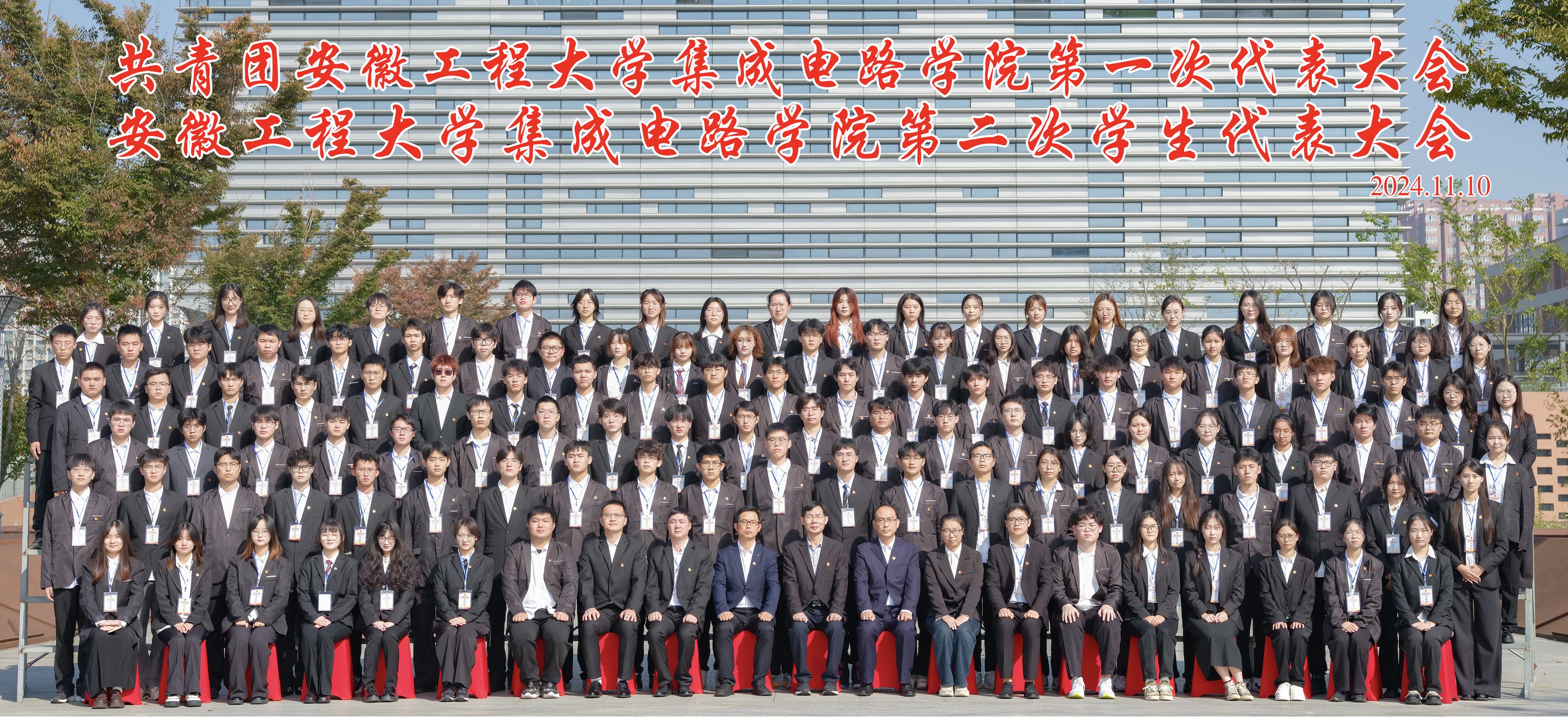 在梦溪报告厅会场,大会听取并审议了卢洁同志所作的《团旗飘扬谱新章 奋楫扬帆启新程 团结带领学院团员青年书写青春华章》团委工作报告、汪晓宇同学代表学院第一届学生委员会所作的《凝心聚力 同心同行 推动集成电路学院学生会工作走深走实》工作报告、陈成成同学代表学生会组织主席团所作的《从“心”开始 与青春同行 团结带领广大青年在矢志奋斗中谱写新时代青春之歌》的工作报告。大会选举产生了学院第一届团委委员会、第二届学生委员会委员和新一届学生会组织主席团以及出席学校“两代会”的代表。卢洁等7人当选为第一届团委会委员,王台鑫等17人当选为第二届学生委员会委员,马昂等3人当选为新一届学生会组织主席团成员。