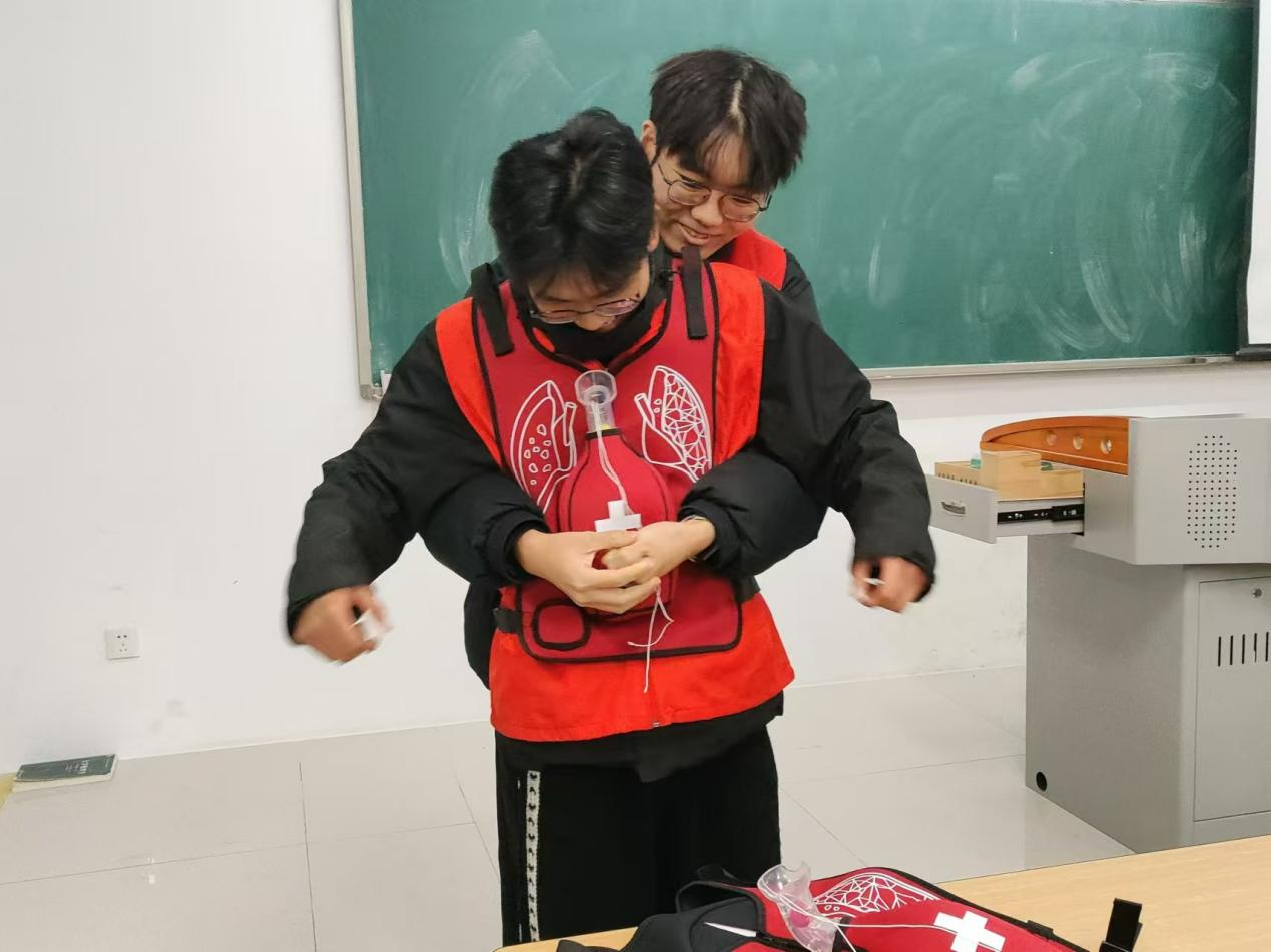 活动伊始,经过专业培训的志愿者们深入浅出地讲解了海姆立克急救法的原理和适用场景,通过生动的案例和形象的演示,让同学们深刻认识到在应对异物卡喉等紧急情况时的重要性,无论是成人、儿童还是婴儿的不同急救手法都让同学们有了清晰的认知。在实践环节,同学们踊跃参与,在志愿者的悉心指导下,亲身体验操作步骤,从背后环抱、手部定位到用力挤压,一招一式都认真揣摩练习。